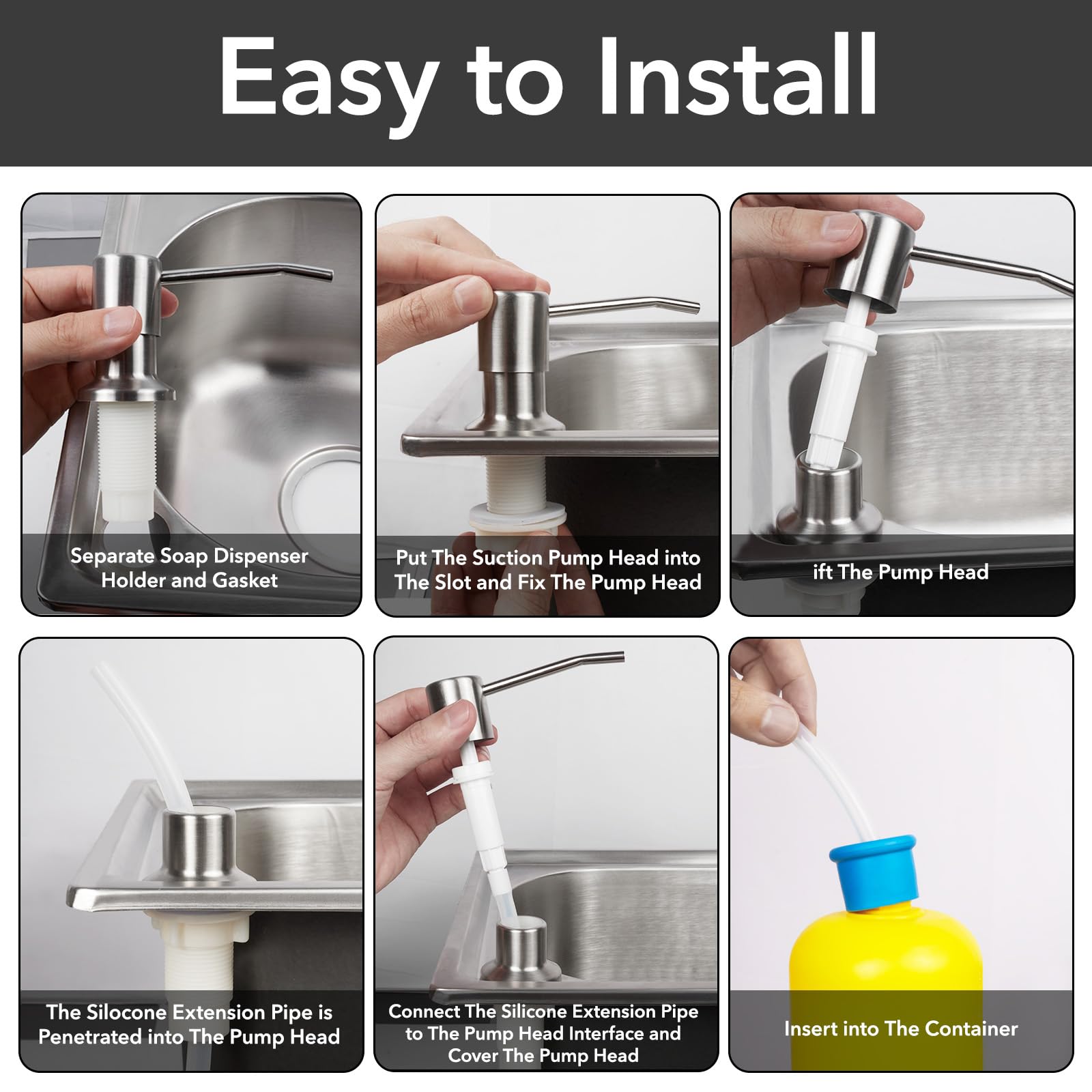 Details: Domthent Soap Dispenser for Kitchen Sink Set,Sink Soap Dispenser Pump with 47" Soap Dispenser Extension Tube Kit,Stainless Steel Countertop Soap Dispenser for Kitchen Bathroom