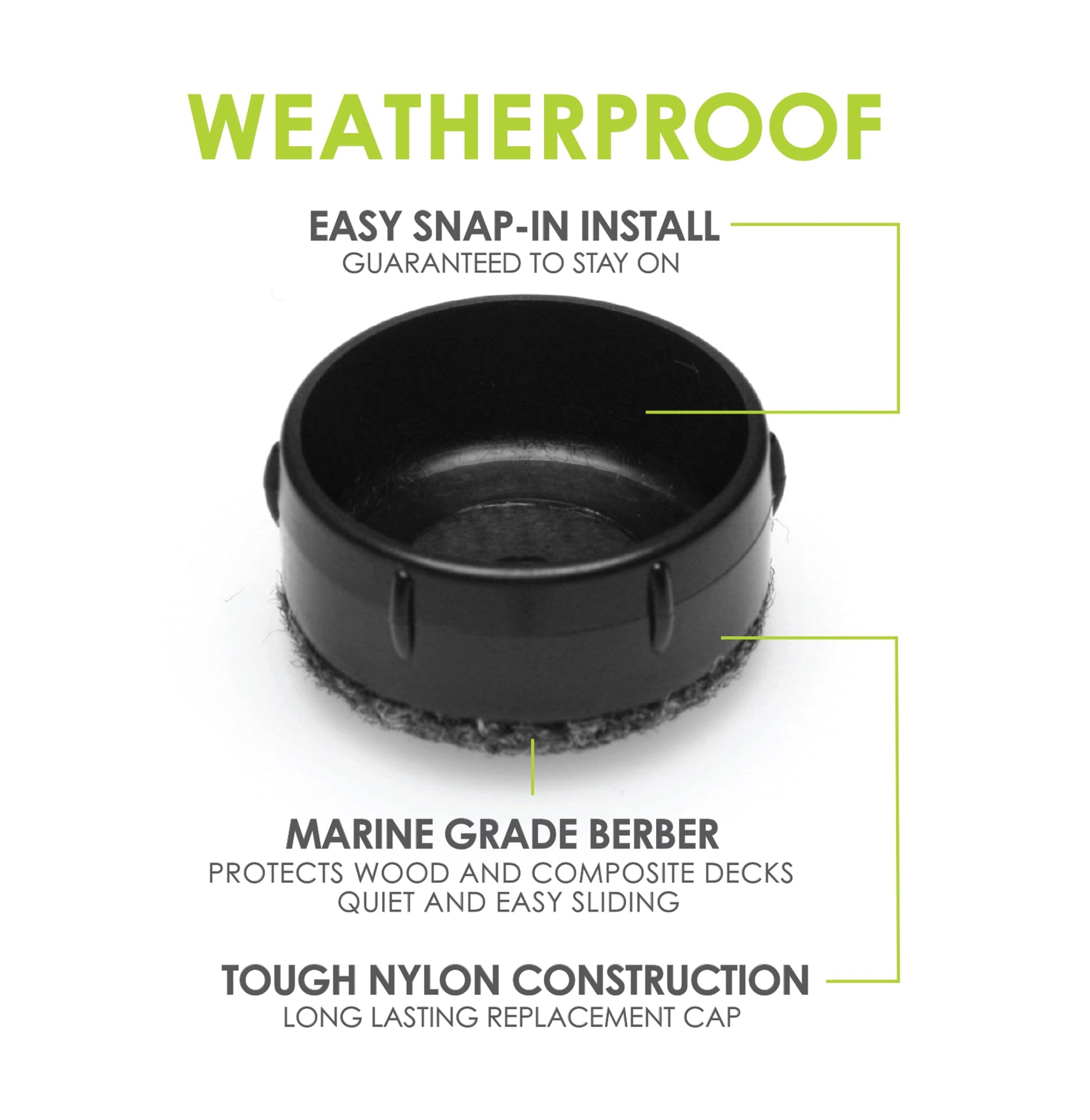 - Weatherproof slider feet caps – Includes set of 8 x 1.5” replacement outdoor furniture glide caps that are designed to withstand the harshest outdoor elements and are covered by Slipstick’s 1 Year free replacement warranty.