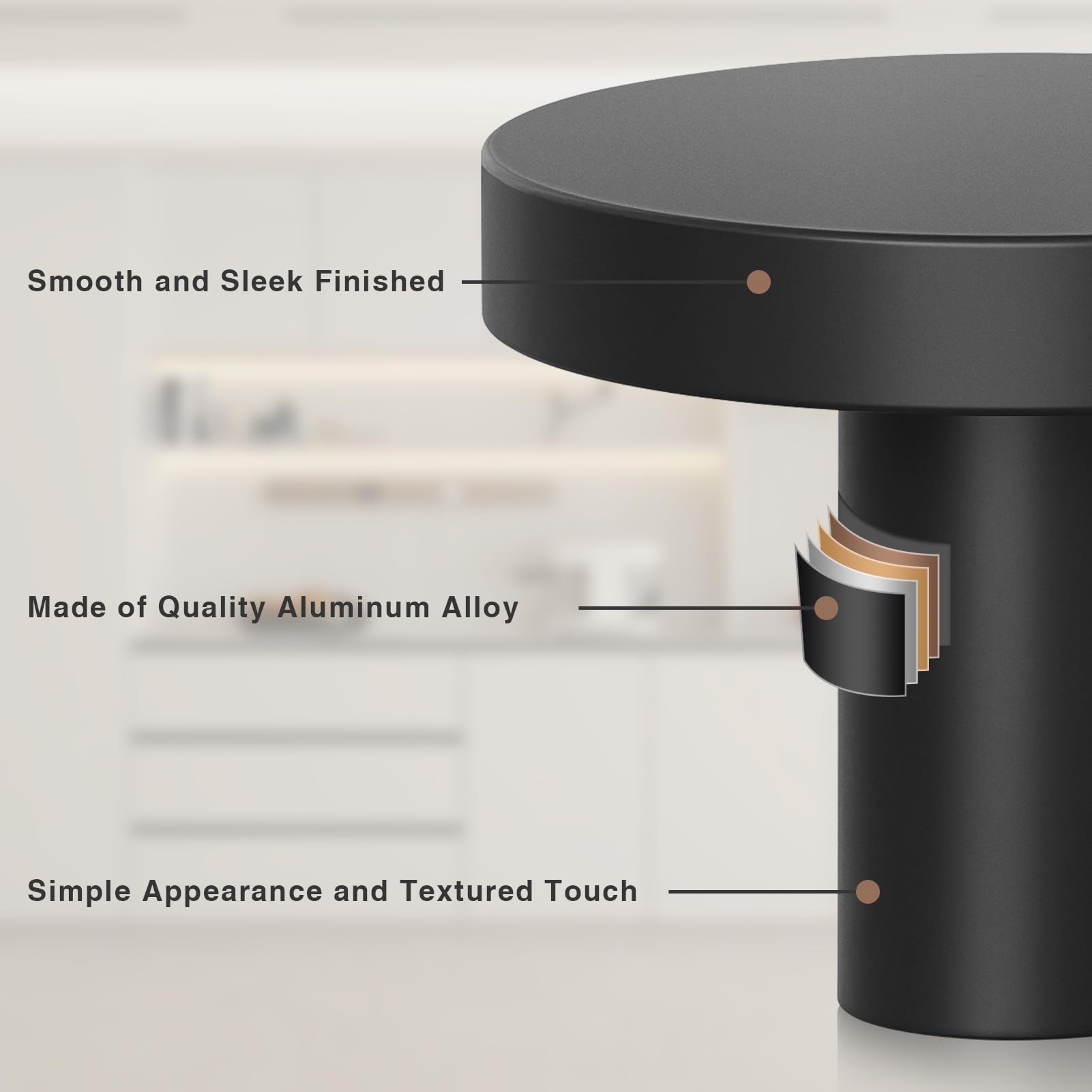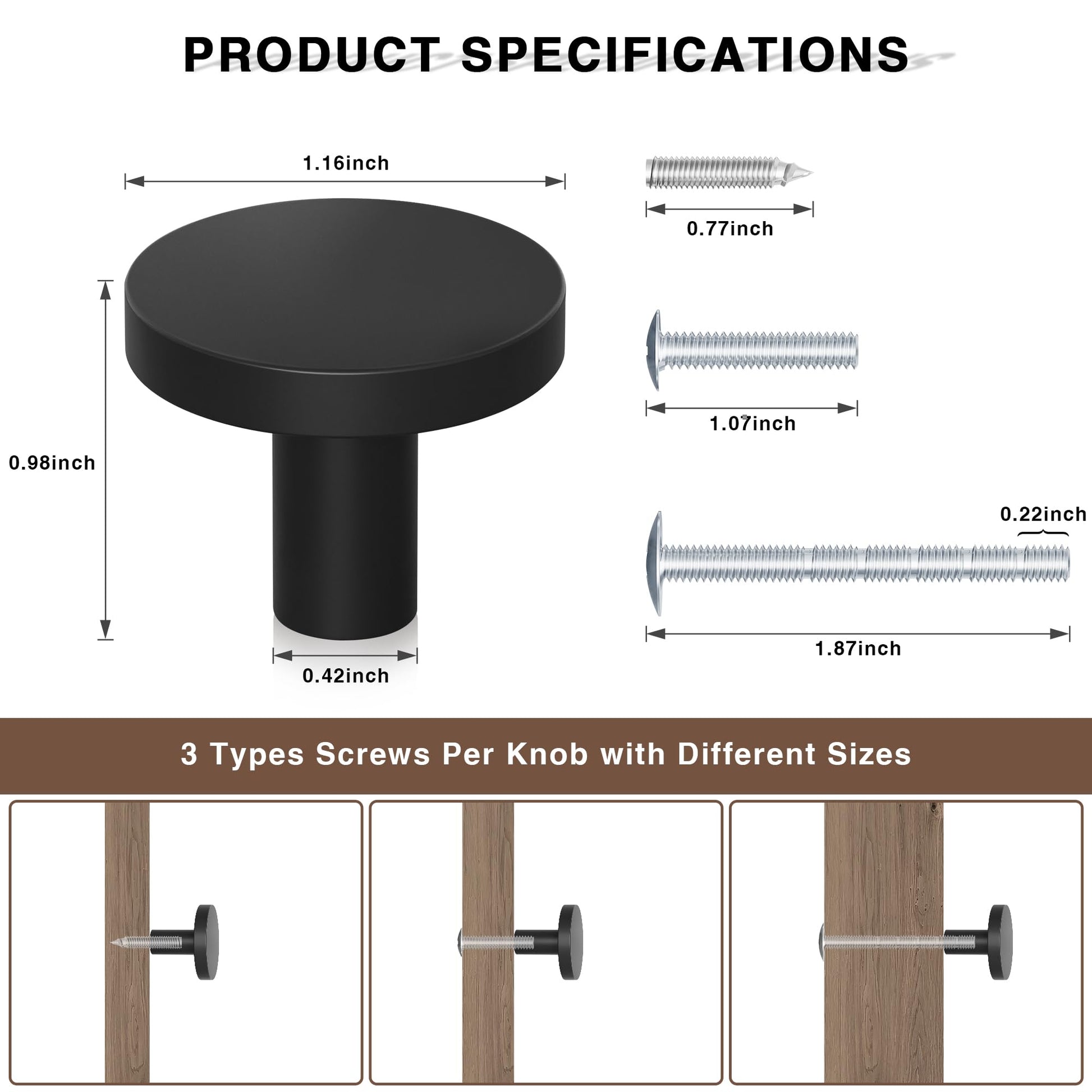 - Material & Dimensions: Top Diameter:1.16'', Base Diameter: 0.42'', Total Height: 0.98''. Crafted with durability in mind, these knobs are made from quality aluminum alloy to withstand daily use. Enjoy long-lasting performance and a reliable grip for years to come.
