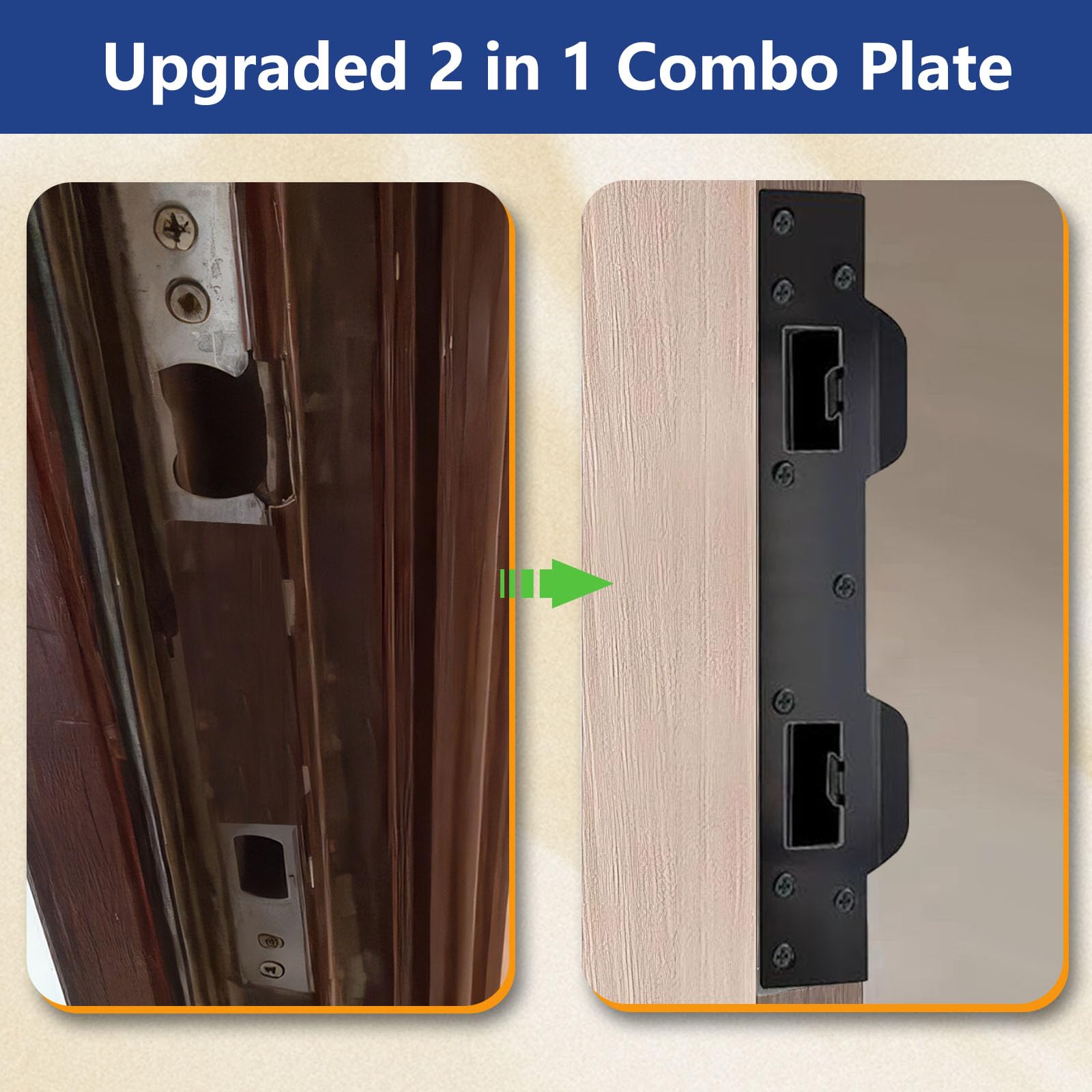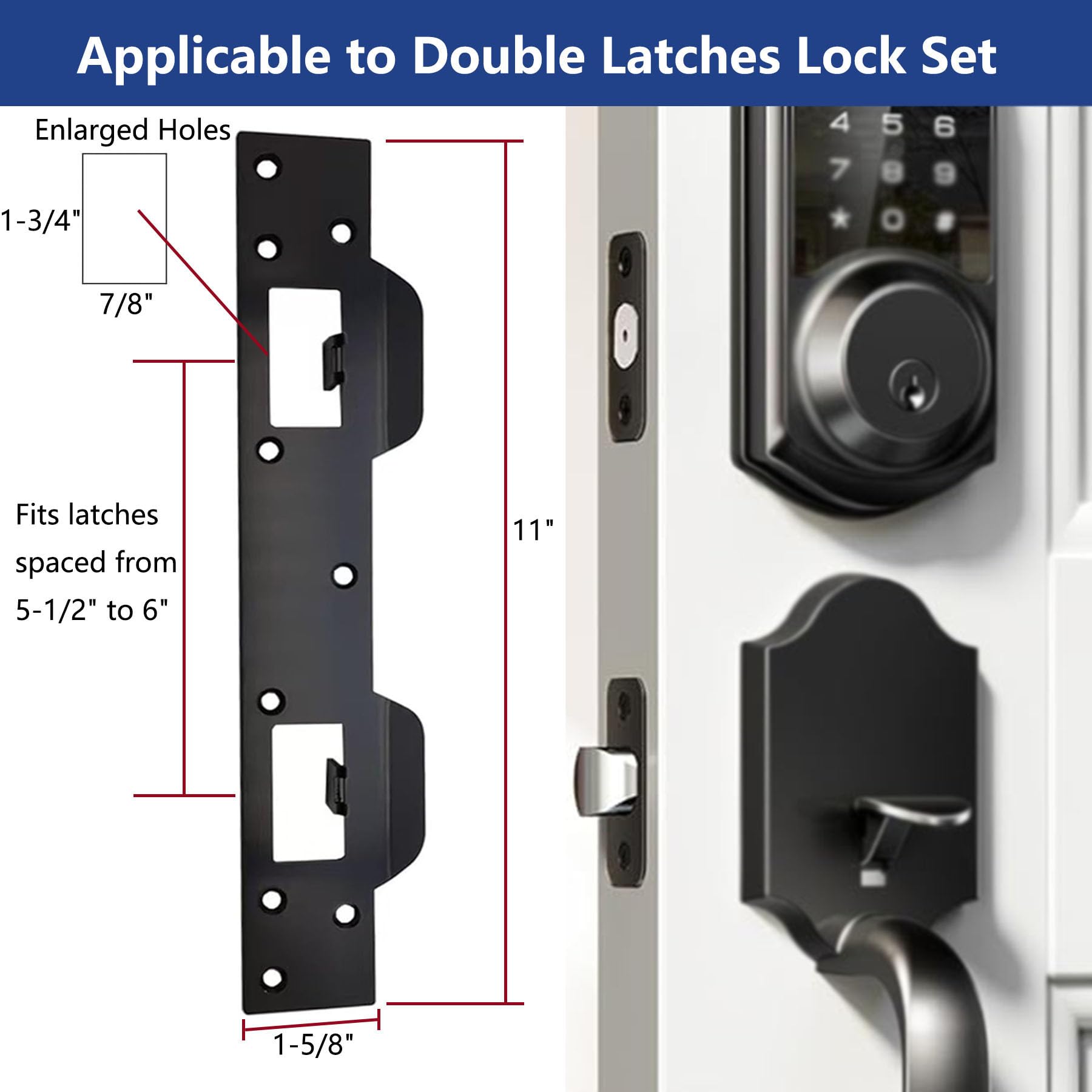 - Replace Standard Latch And Strikes: Door latch plate is designed to replace the standard, separate latch and deadbolt strike plates with a one-piece combo plate. The longer door armor adds extra security to prevent the standard strike plates from being forced from the door jamb and frame