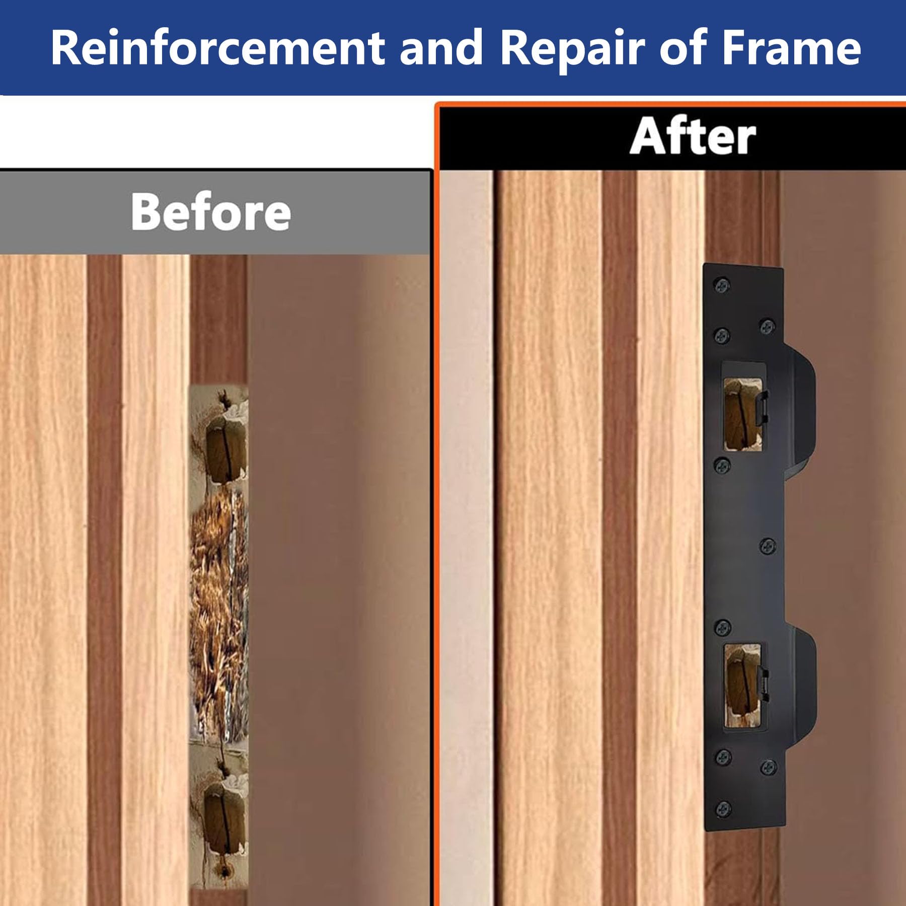 - Door Jamb Repair Kit for Broken Frame: Security strike plate is an effective solution for repairing a broken door jamb. It can strengthen or repair a wood jamb that has been drilled or screwed many holes. It is long enough to cover all the old or poor door jamb leaving your door looking as good as new