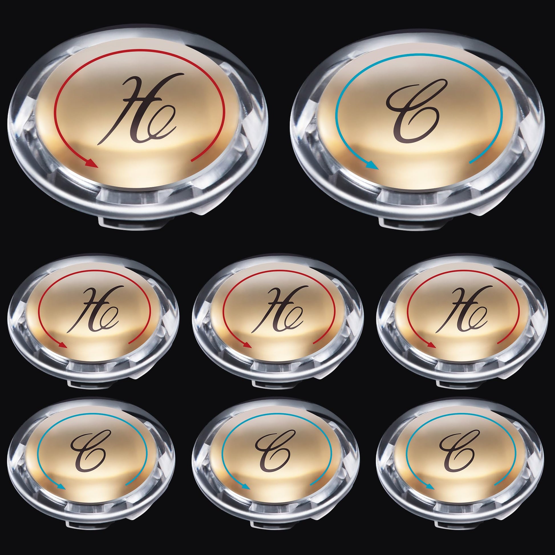 - Kit Contains: total 4 pairs of universal hot and cold index buttons with marked cursive hot and cold stamping, enough for you to replace dirty or damaged faucet handle buttons