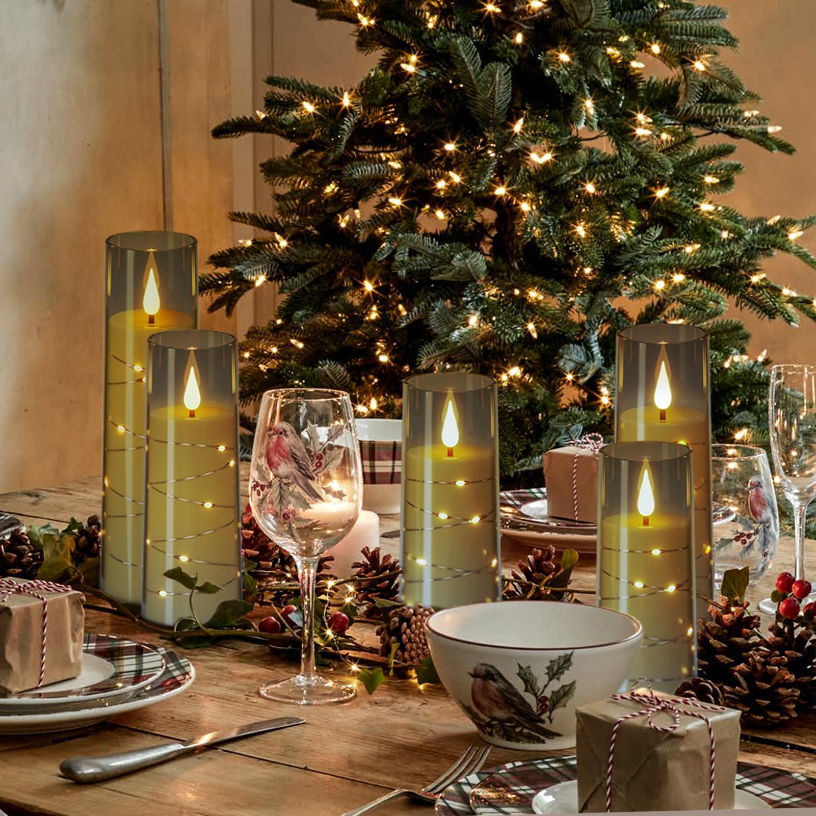 - [Holiday Decor]: These battery flameless candles widely suitable for your dinner, wedding, party tabletop decor. Creative design make our glass string light candles a great addition to your Christmas holiday home decor