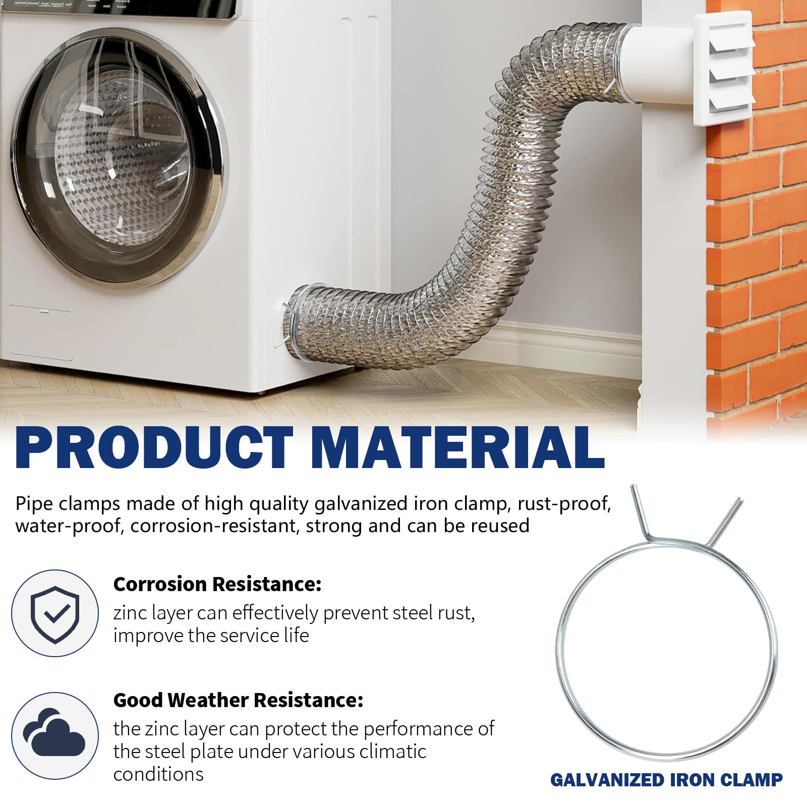 - Strong Tightening Force: 4 inch hose clamp for dryer vent hose clamp ensure a tight connection between the duct and the dryer or vent, preventing air leakage, makes it easier and safer to pull the dryer out later.