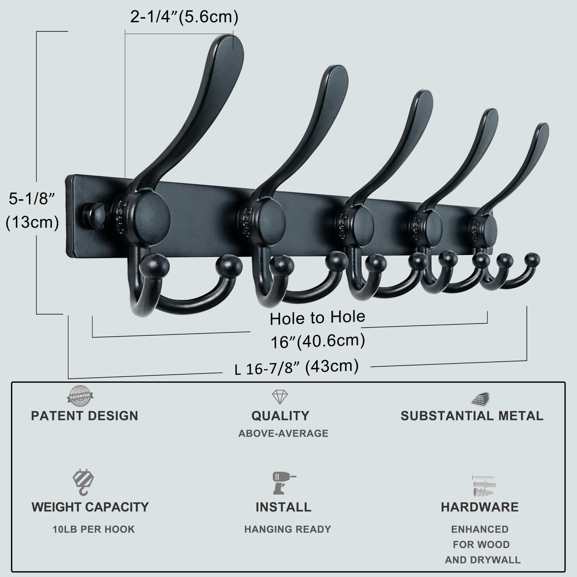 - 【16” Stud Ready, 3X Stronger Hold:】 The wall coat hooks features 16” stud-mounted spacing. Holds 50 lbs. Easy to install in 5 mins. (drywall anchor included)