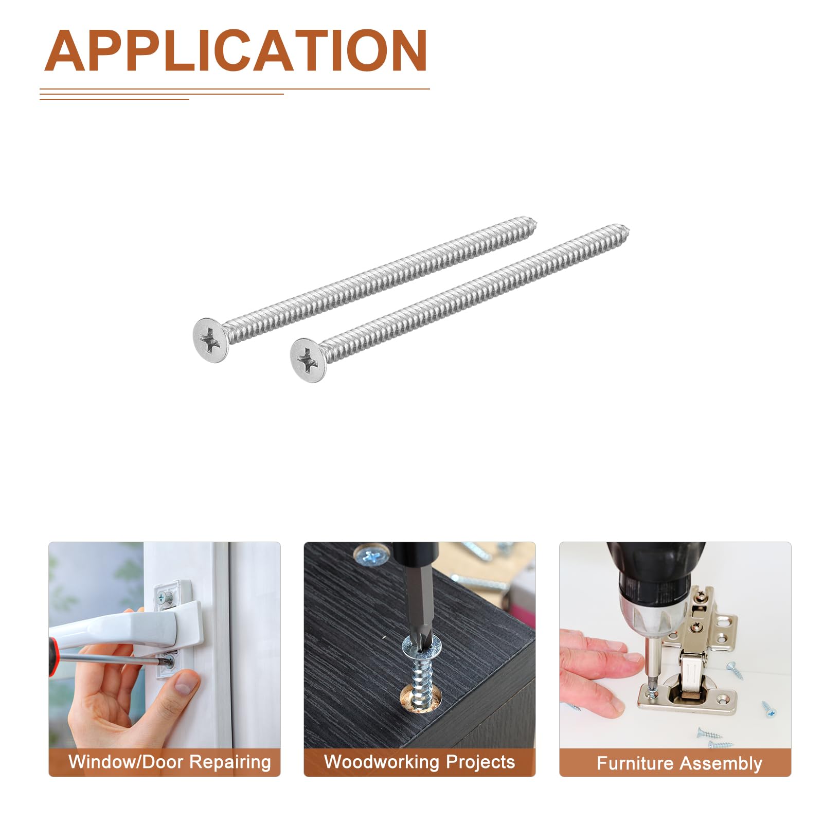 - [Self Tapping Srews]: The package comes with 25pcs of silver tone self tapping screws in #10x4" size(Thread Dia*Total Length). The quantity is sufficient and the size is enough to meet your needs on different occasions.