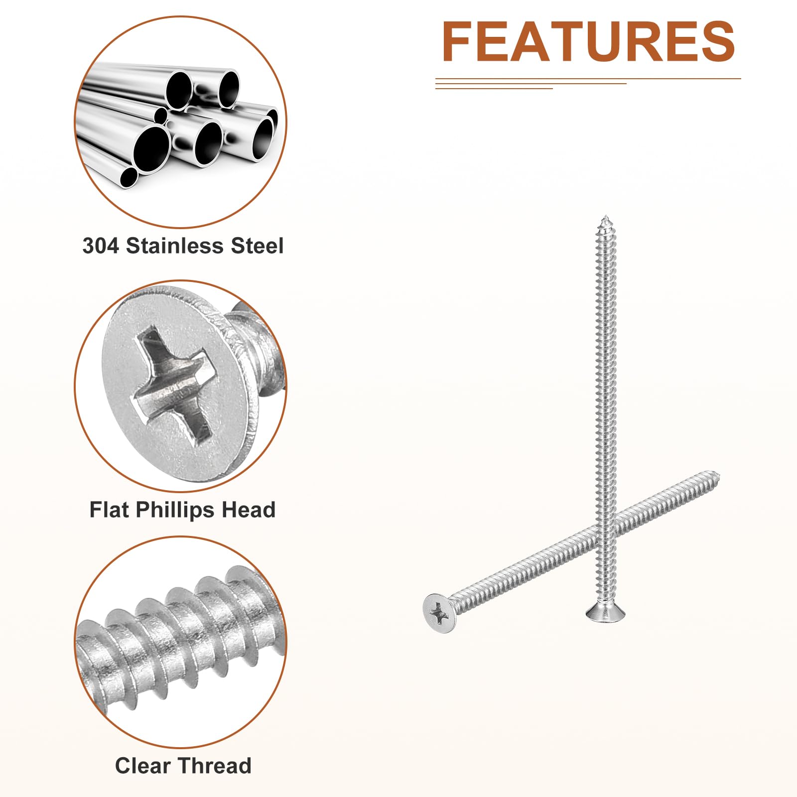 DTGN 25Pcs #10x4 Flat Head Wood Screws, 304 Stainless Steel Phillips Self Tapping Screws - Good for Woodworking, Furniture - Silver