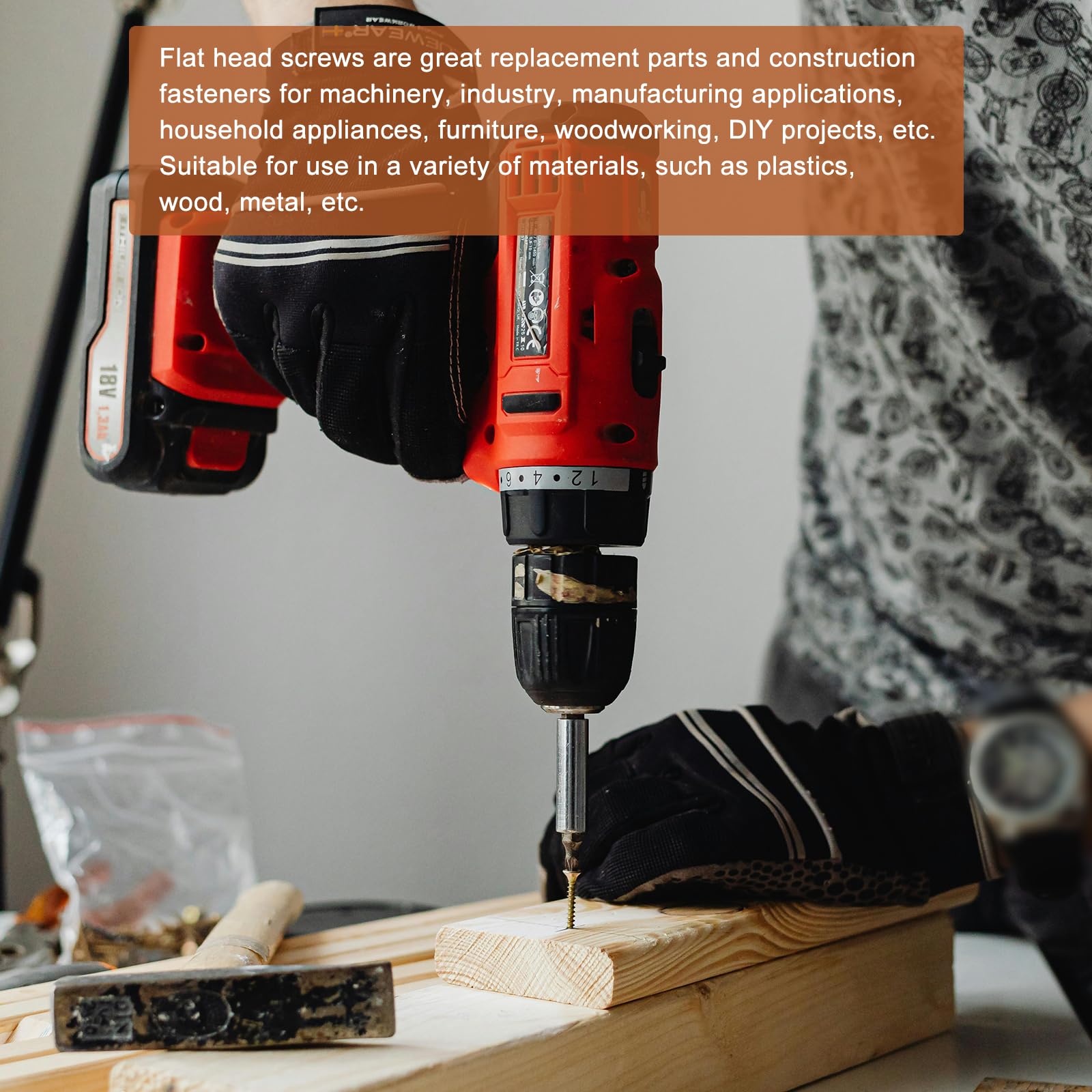 - [Good Choice]: Flat head screws are great replacement parts and construction fasteners for machinery, industry, manufacturing applications, household appliances, furniture, woodworking, DIY projects, etc. Suitable for use in a variety of materials, such as plastics, wood, metal, etc.