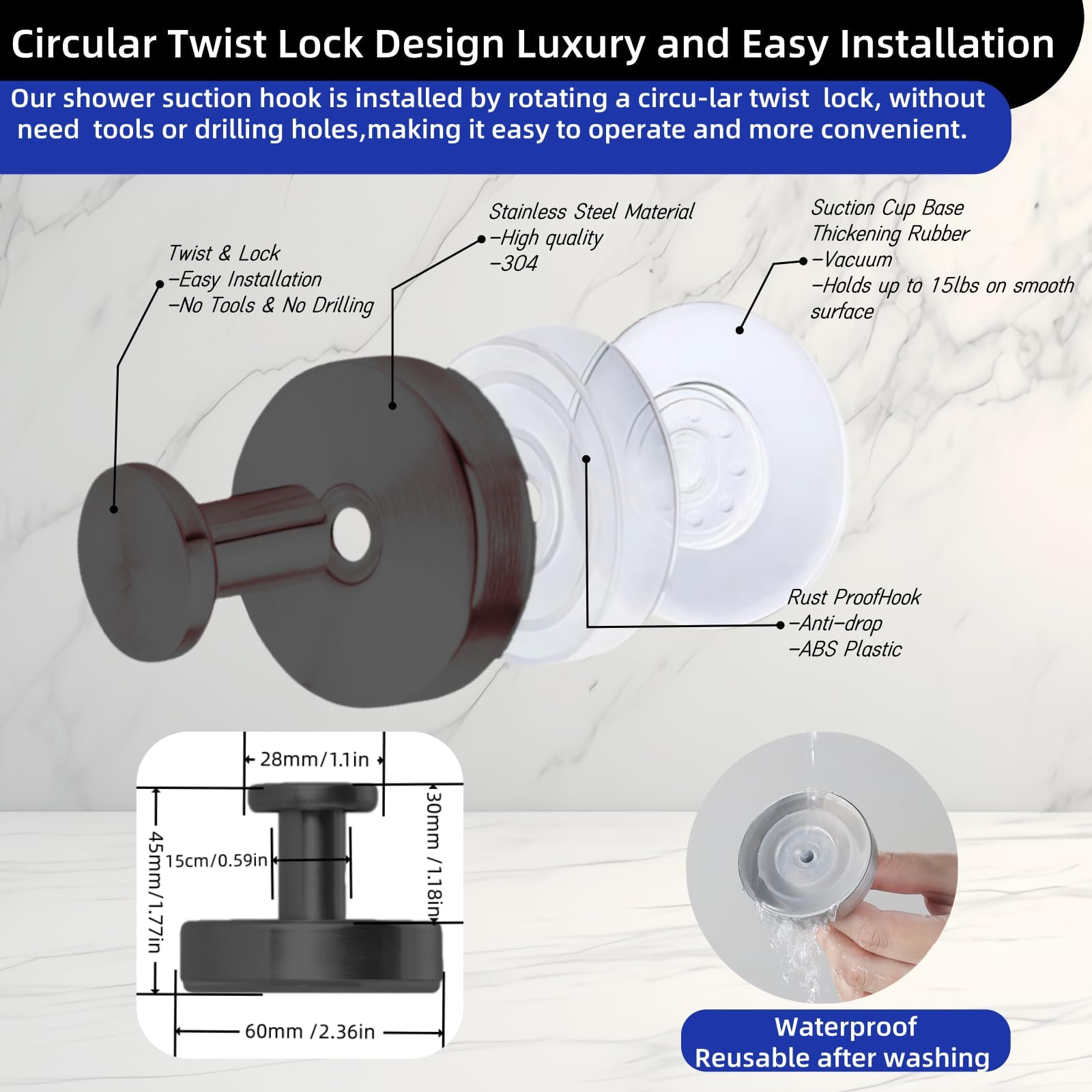 - Reusable & Removable:The luxe grip hook for shower are waterproof, rustproof, and easy to remove and reuse. Twist the knob to release, wash the suction hooks bottom, and reinstall for repeated use
