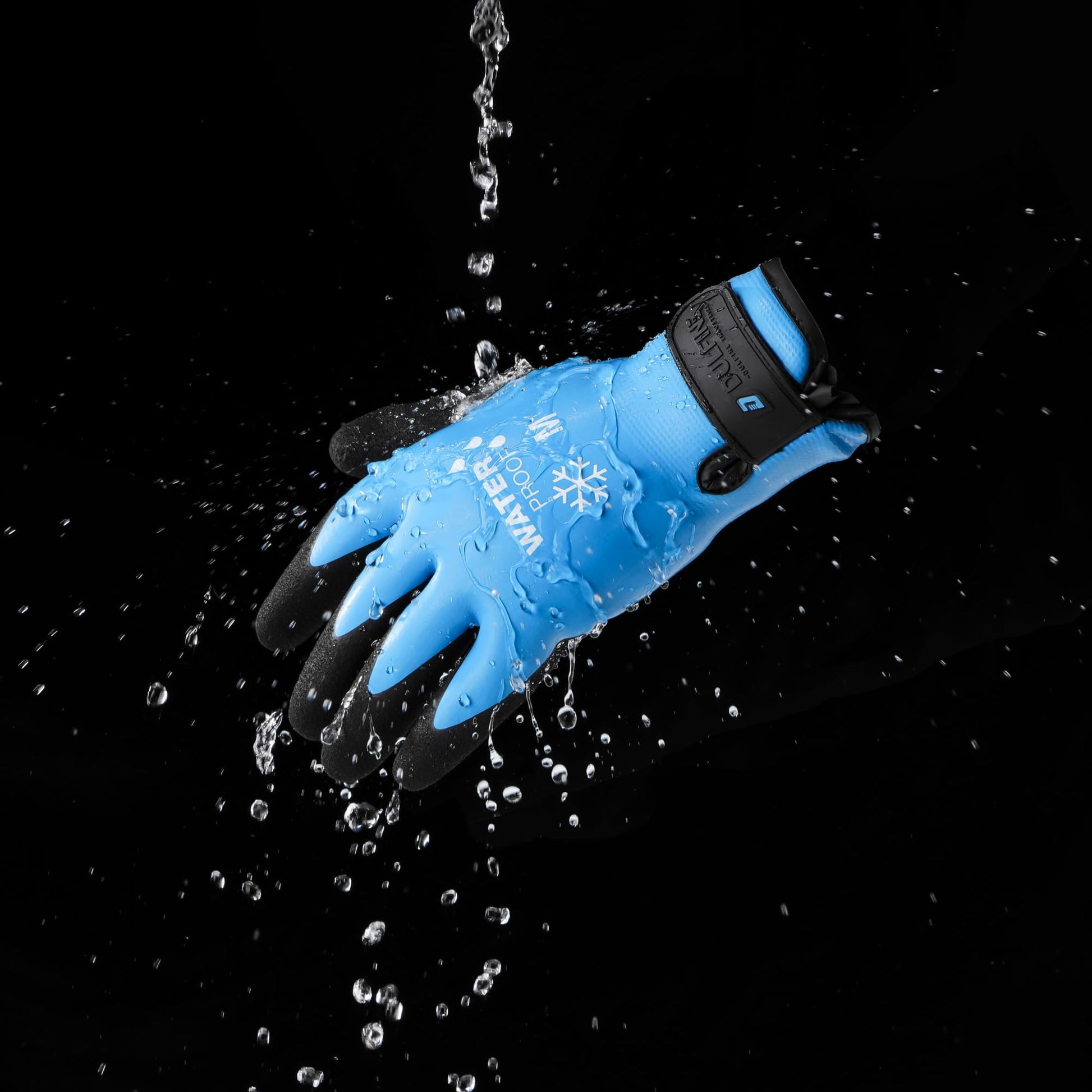 DULFINE 100% Waterproof Winter Work Gloves for Men and Women,Foam Latex Coated and Thermal Insulated Gloves for Cold Weather,Outdoor Freezer Gloves(Large)