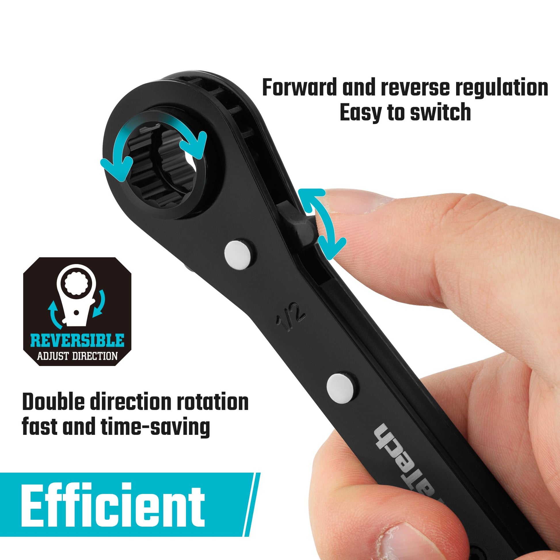 - HIGH QUALITY & RELIABILITY: Reversible ratchet wrench set, manufactured with carbon steel+A3 steel and sandblasting finish, surface black electrophoresis treatment for rust resistance