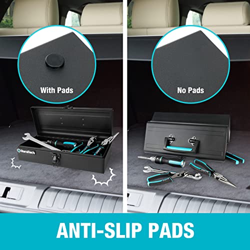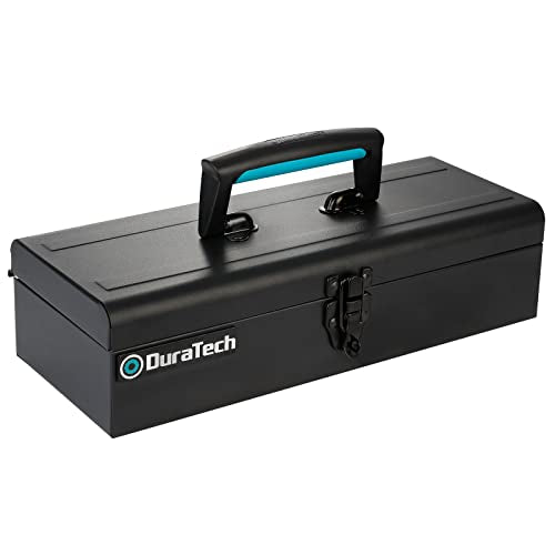 DuraTech Tool Box, 15" Portable Steel Small Tool Box with Metal Latch Closure & Plastic Handle with Anti-slip Base, Multi-Purpose Heavy Duty Toolbox, Black