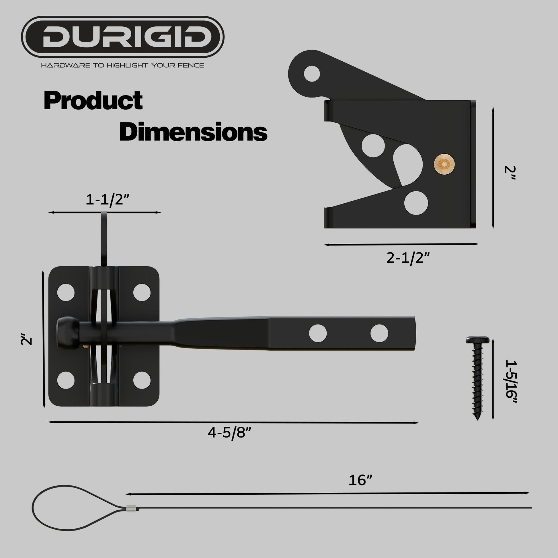 DURIGID Self Closing Fence Gate Latches with Spring Cable, Fingertip Release Gate Latch for Wooden Fence, Vinyl Door, Aluminum Gate, 1 Pack, Black