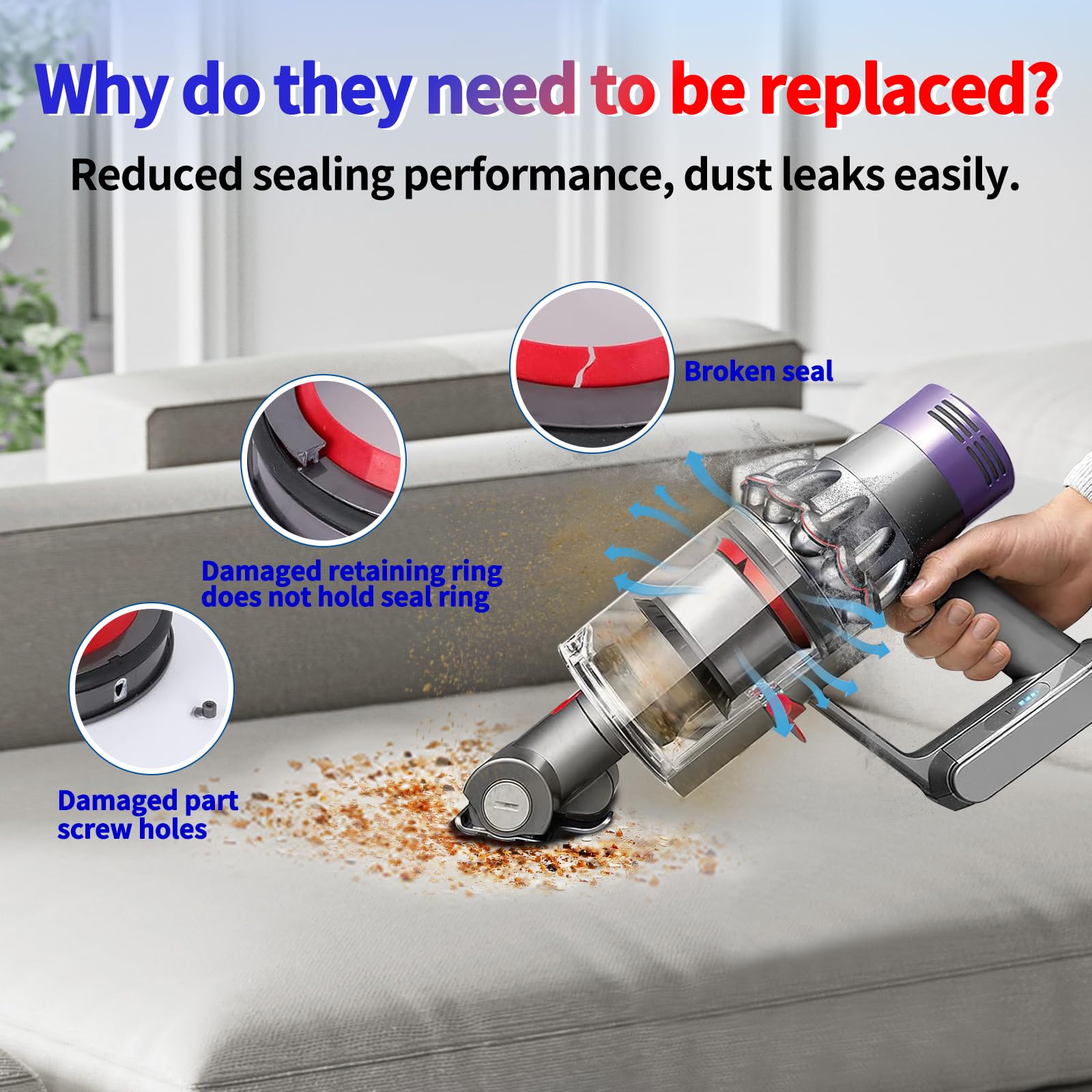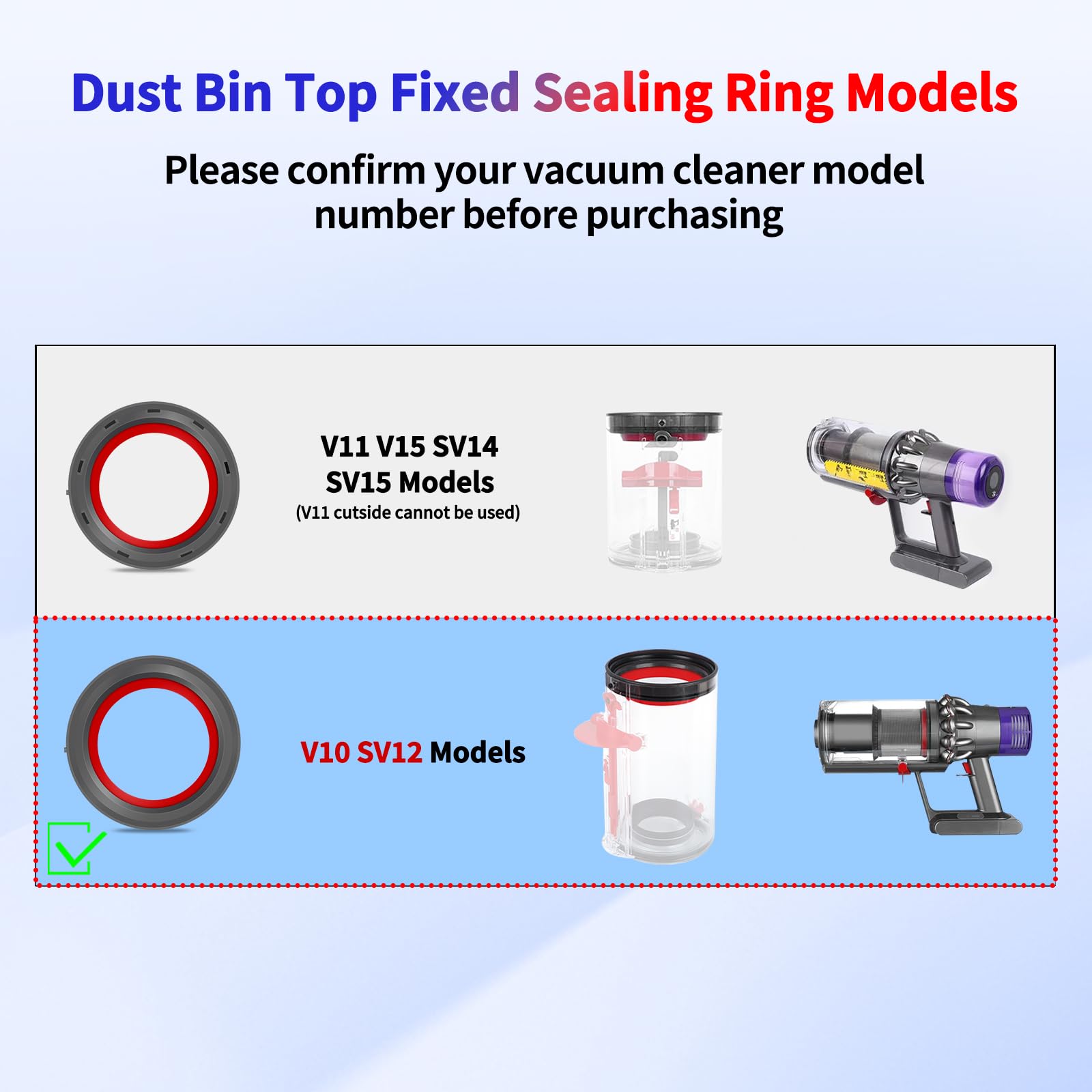 - 【Fully Compatible】: The replacement dust bin fixed sealing ring is compatible with V10,SV12 cordless vacuum cleaners. Before purchasing, please refer to the product image to confirm the model and size of your part.