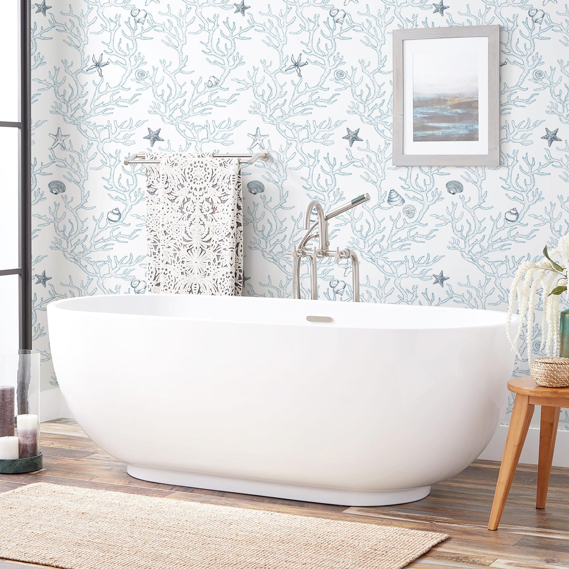 Dviolet Peel and Stick Wallpaper - White and Light Blue Contact Paper - Coral/Seashell/Starfish Pattern - Removable Wallpaper for Kids Room - 17.3"X 118"