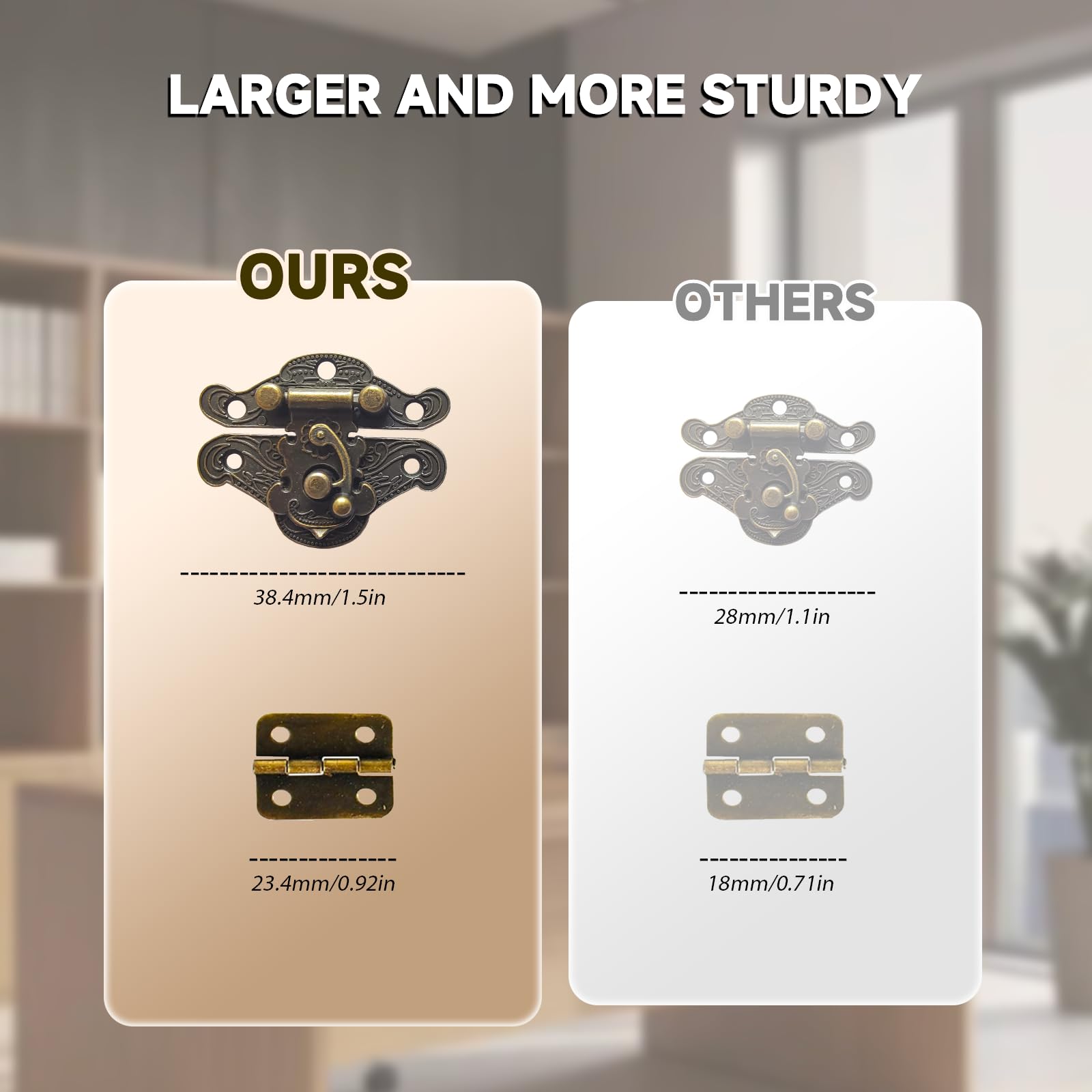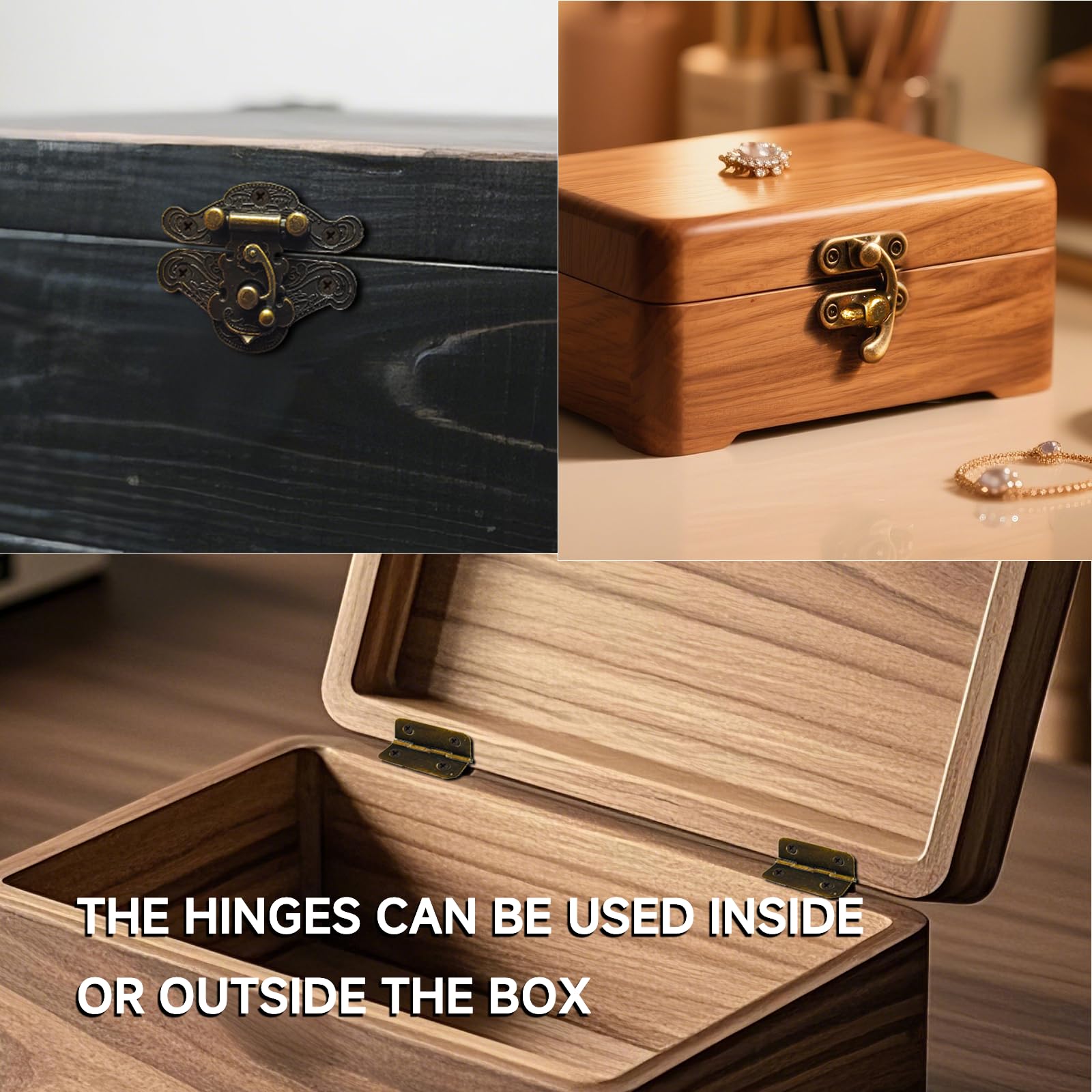 - 🔒Jewelry Box Hinges And Latches Set: Includes 6 retro bronze colour latches and 12 hinges for wooden jewelry boxes and cabinets, with matching screws.