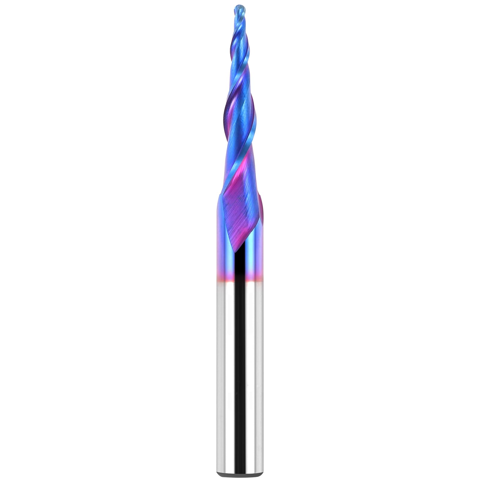 - Solid Carbide & Blue Nano nACo Coated: The Ball Nose CNC Bit is made of solid carbide. And Blue Nano Coated with high hardness and heat resistance enables the tool's cutting edge to retain crucial sharpness and lubricity. This provides longevity and produces cutting results of the highest quality. Clean surface, neat, no glitches. Up to 2.5X longer life compared to uncoated bits.