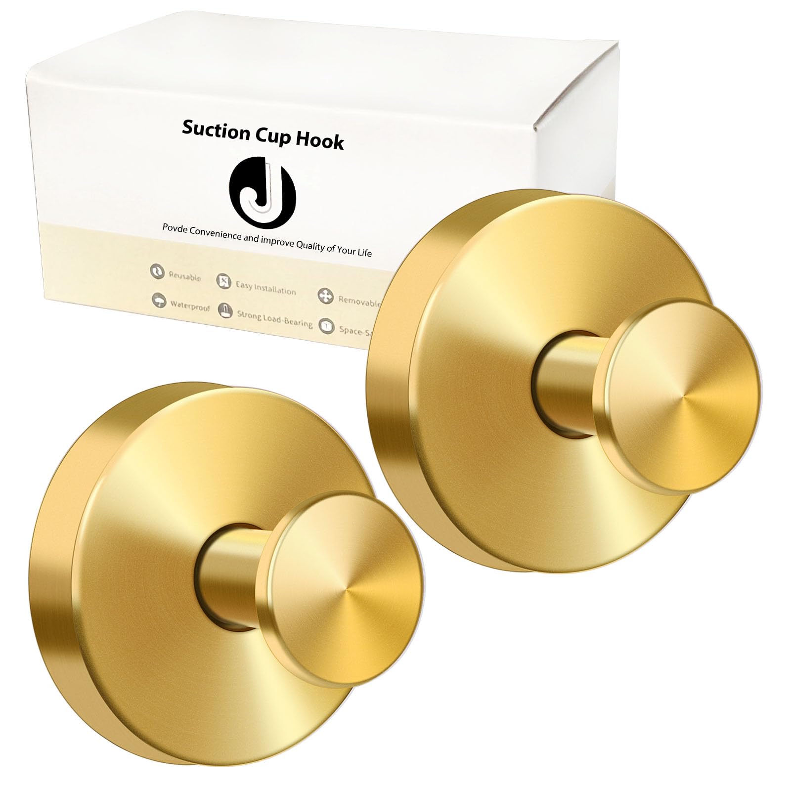 EASETROL Gold Suction Cup Hooks for Shower, Heavy Duty Wreaths Hangers for Glass Door Window, Bathroom Towel Robe Suction Cup Hook, No Drill Holder on Smooth Wall, Mirror, Tile for Home (2, Gold)