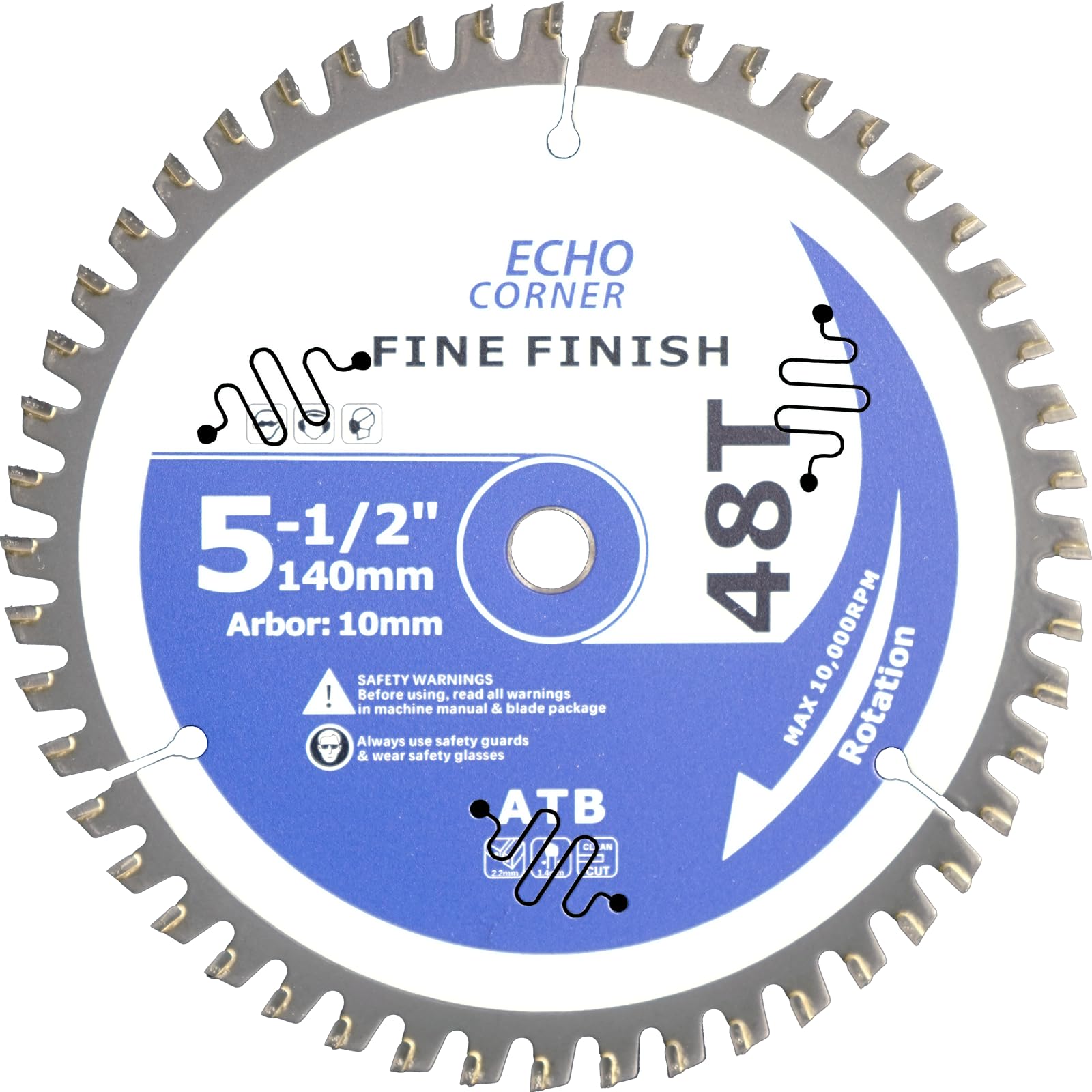 Echo Corner 5-1/2-Inch (10mm Arbor) Circular Saw Blade 48-Tooth, Carbide TCT Fine Cut Fine Finish Crosscut Framing Ripping Wood Plywood MDF Plastic Veneer Lumber Laminate