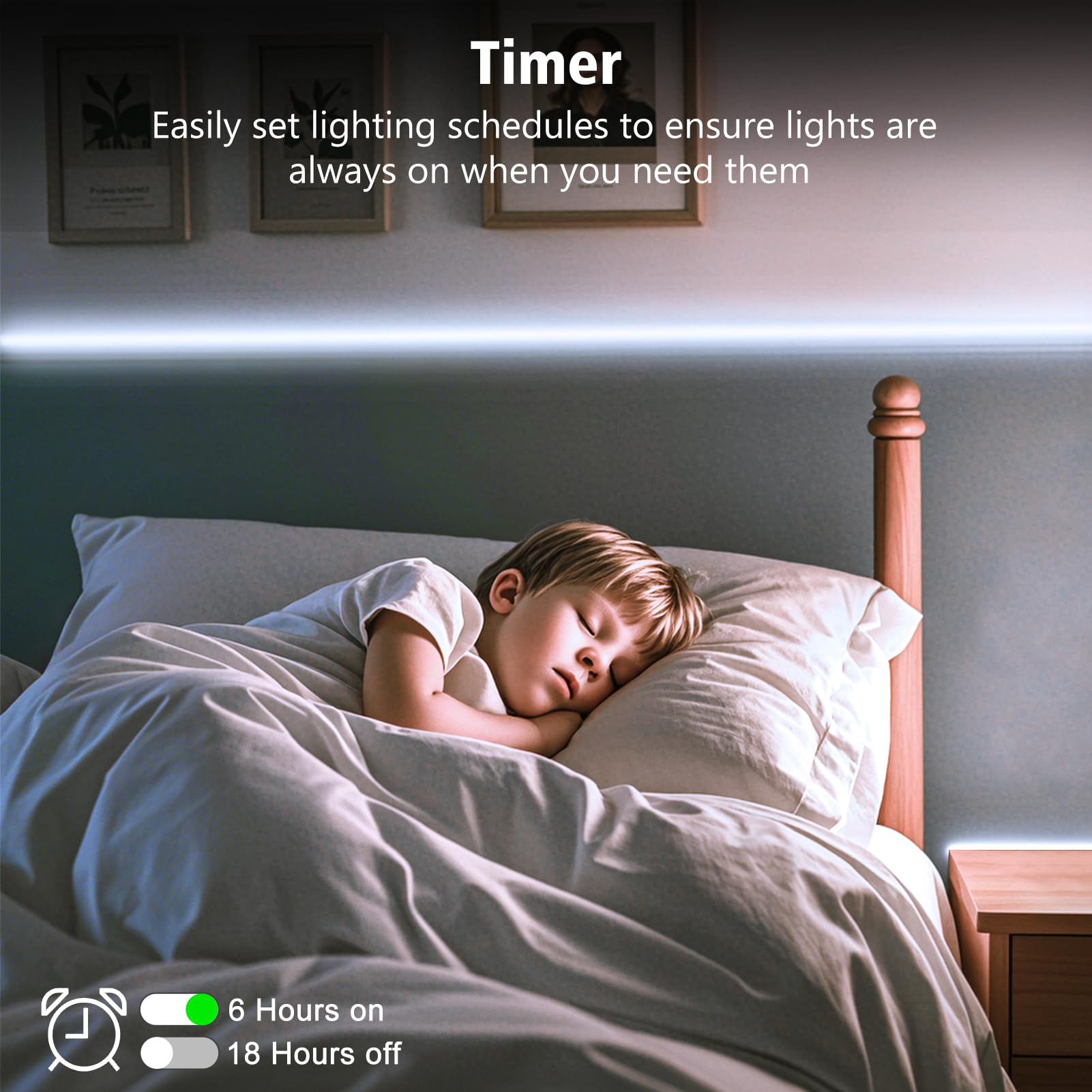 - Timer Function: The LED light strip has a smart timer function, turning on for 6 hours and off for 18 hours a day. This design ensures the convenience of long-term use, No need to remember to turn off the lights