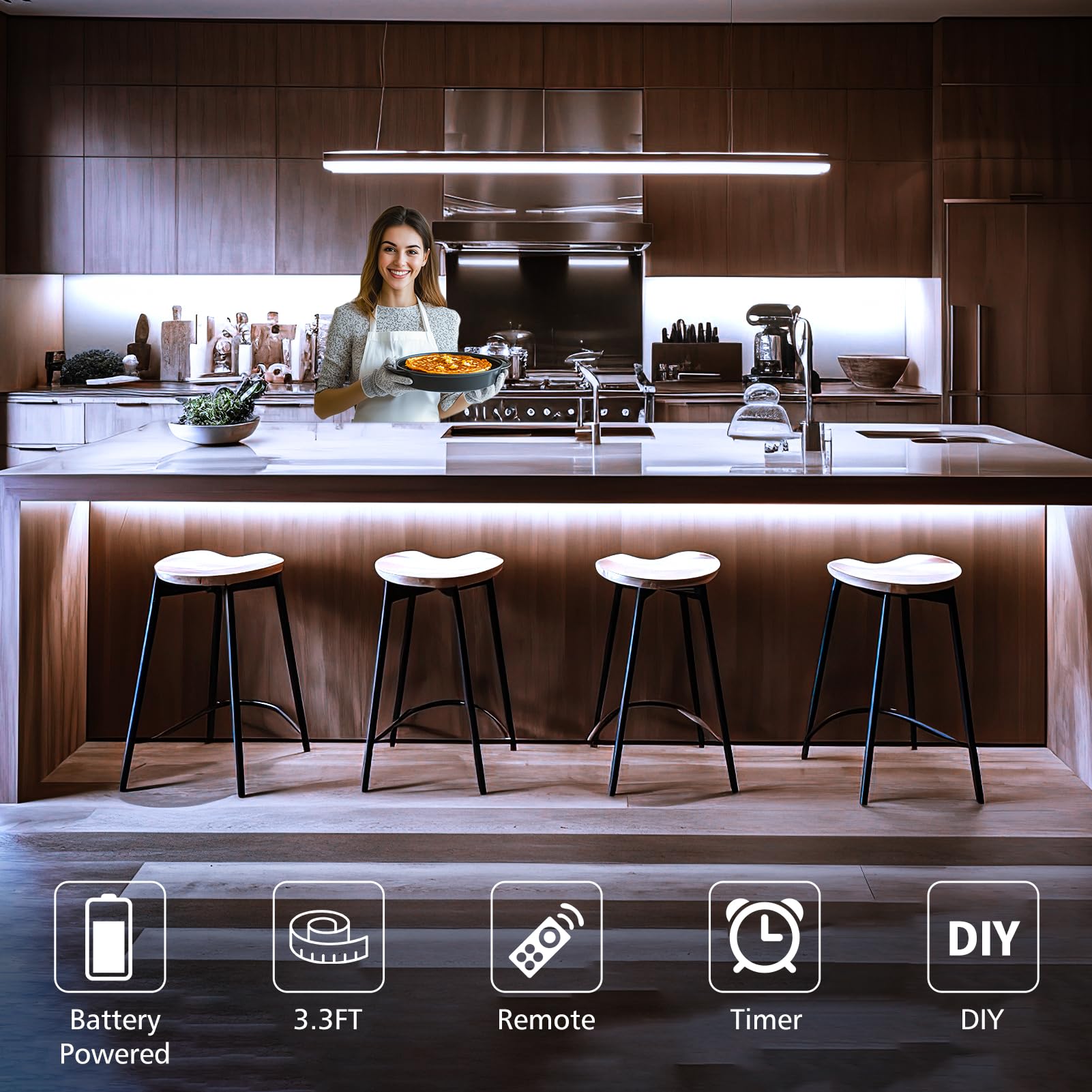 echosari 3.3FT 6000K Strip Lights Battery Operated, Tape Light with Remote 8 Modes Timer Self-Adhesive Cuttable, Strip Lights for Bedroom Cabinets Shelves TV Indoor Decor (Cool White)