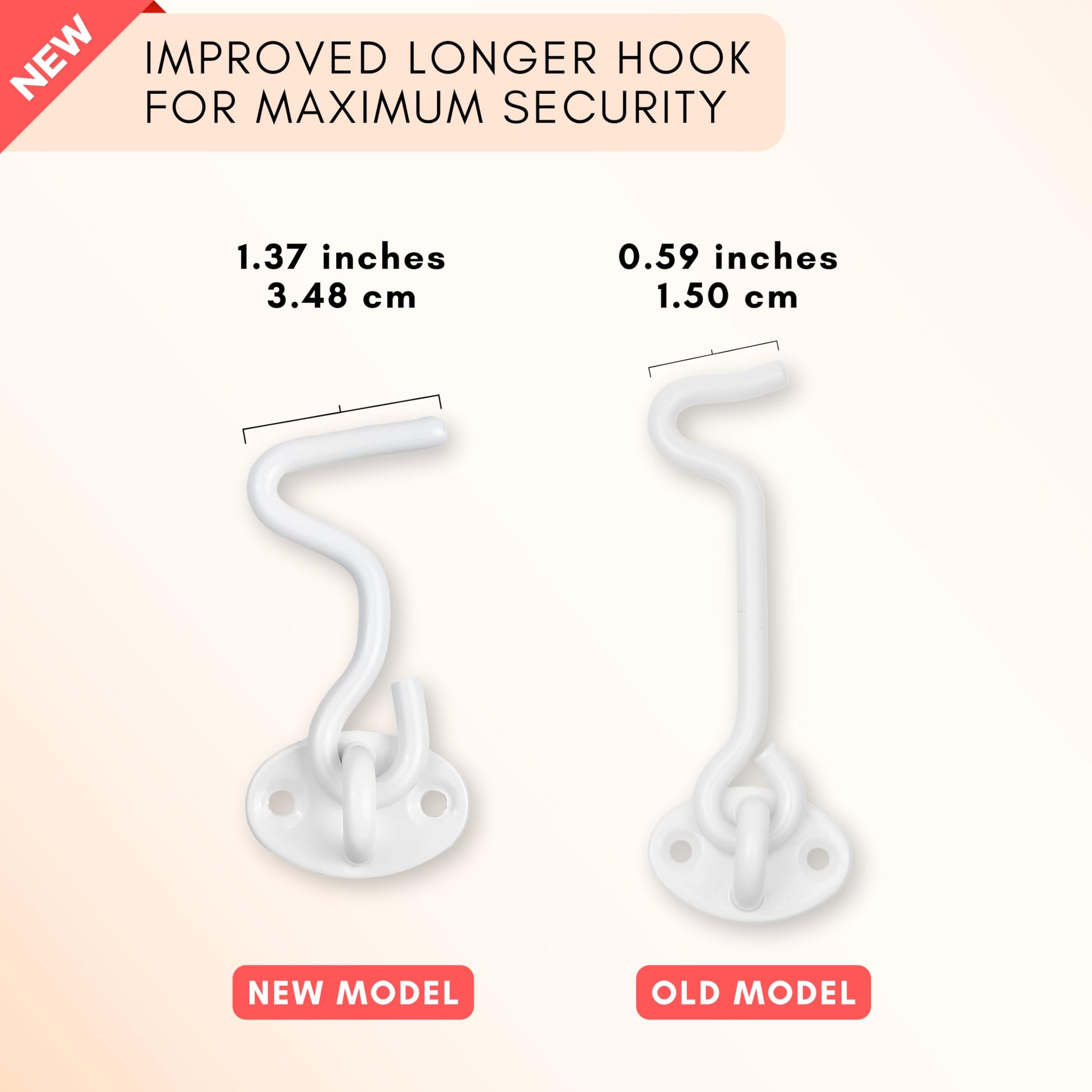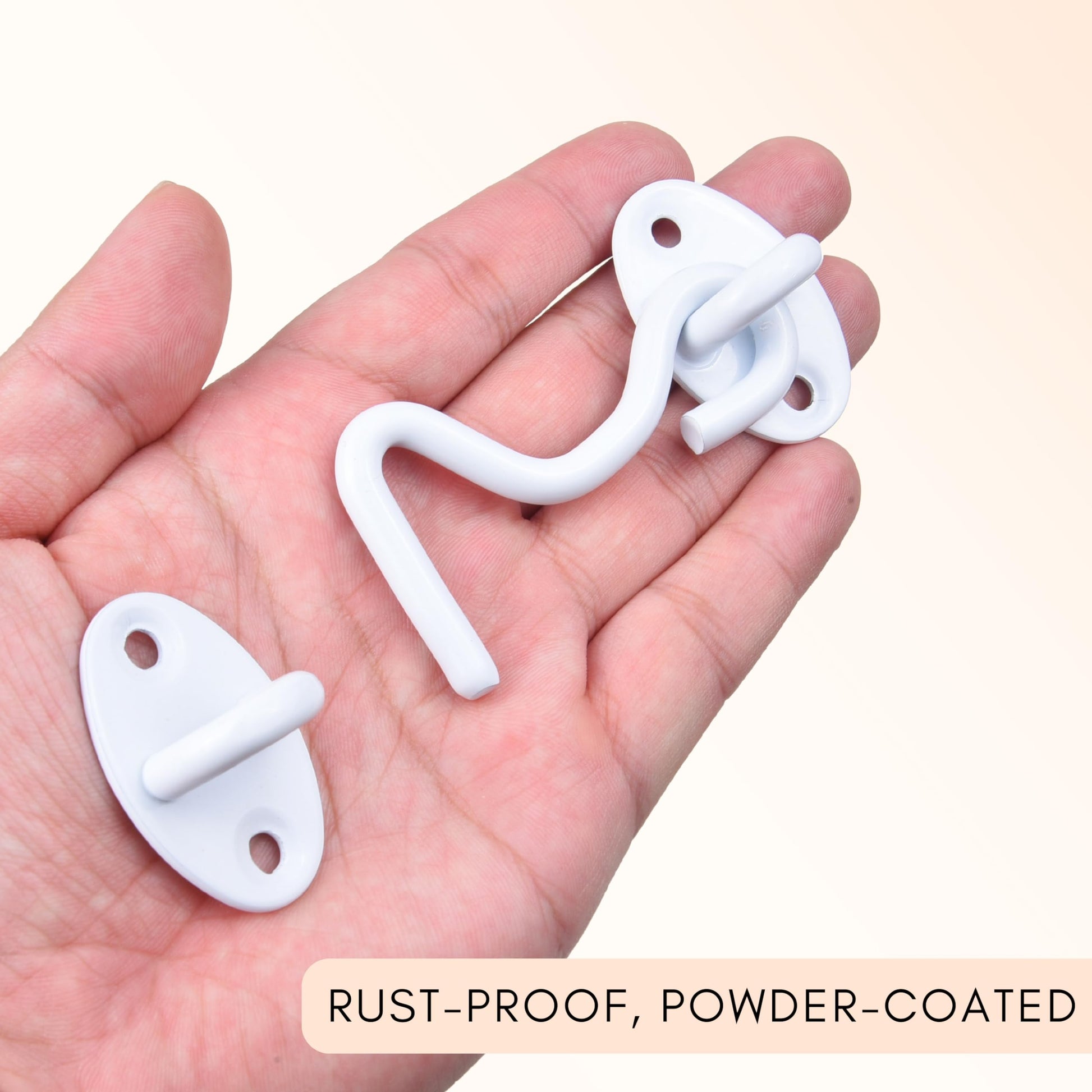 Eco-Fused 3-inch Heavy Duty Hook and Eye Latch - 2X Barn Door Lock (White), 8X Mounting Screws - Powder Coated Stainless Steel Hooks for Door, Windows, Sheds, Fences, Gates, Closets, Cabinets
