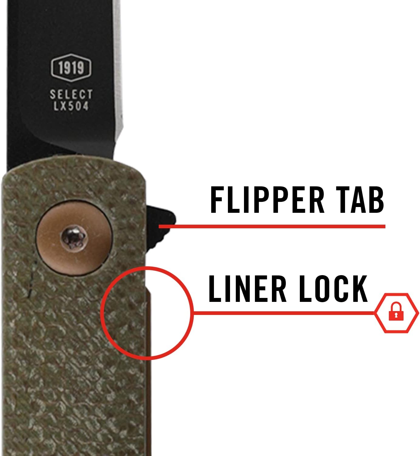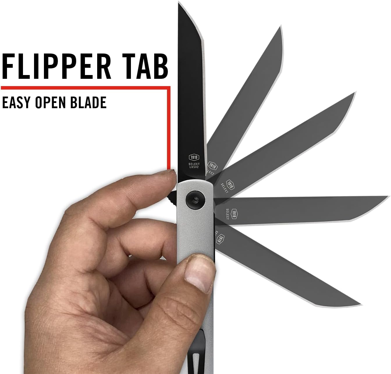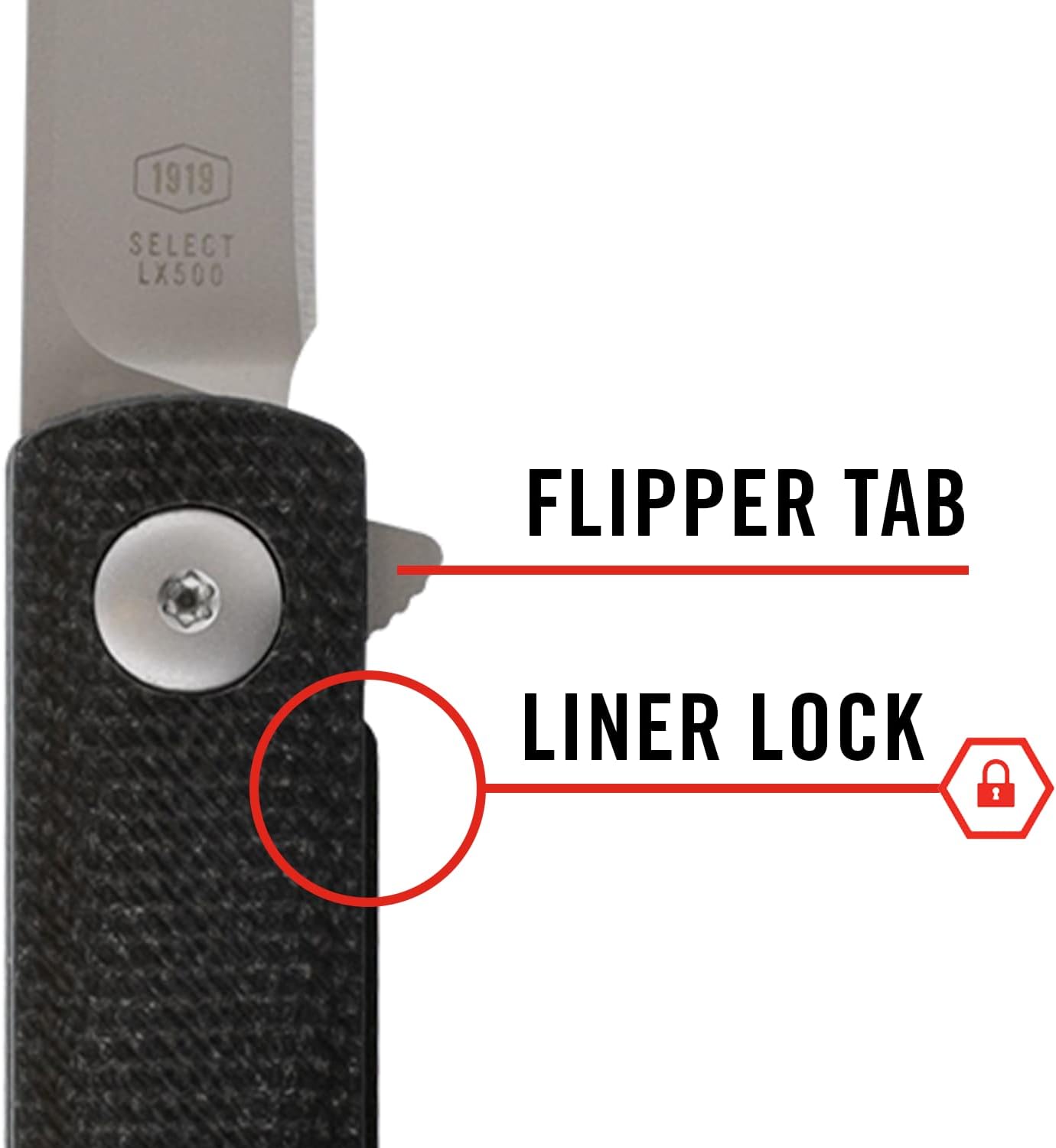 - FLIPPER TAB: Flipper Tab with Caged Bearings Open the knife with an easy flick—the flip tab fitted with caged bearings makes for effortless motion and balance in the hand.
