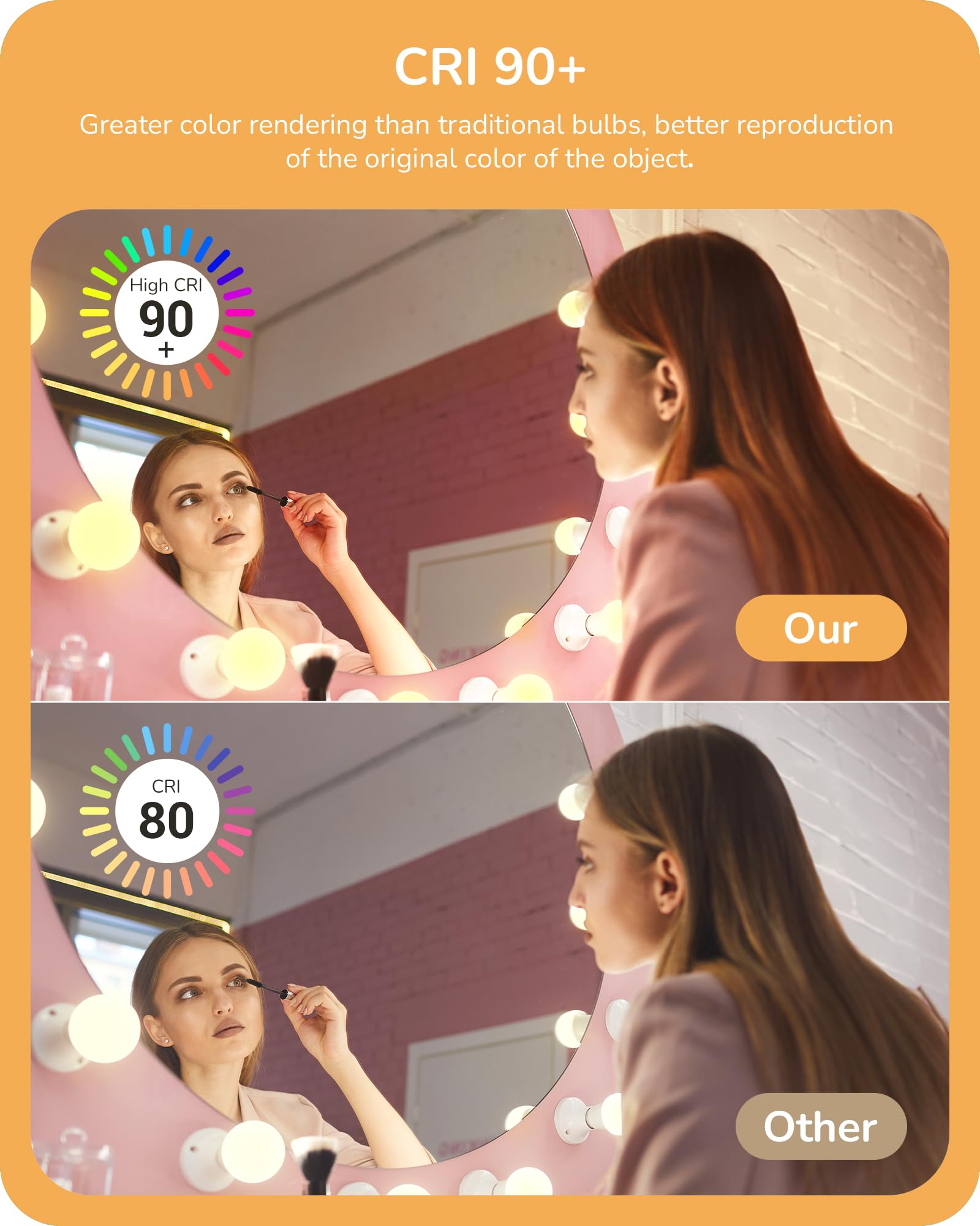 - [High CRI 90+] Our globe light bulbs with a color rendering index of 90+, accurately show object colors than traditional G25 bulbs; ideal for chandeliers or lamps, also perfect for dresser, or vanity mirrors to enhance makeup application, creating a more flattering look