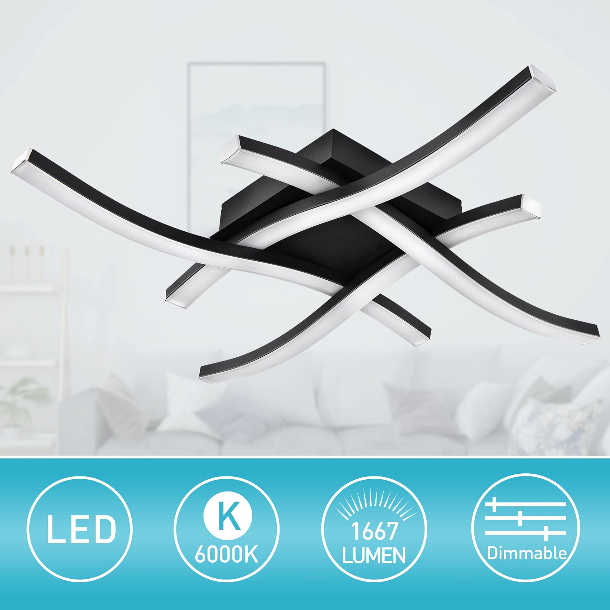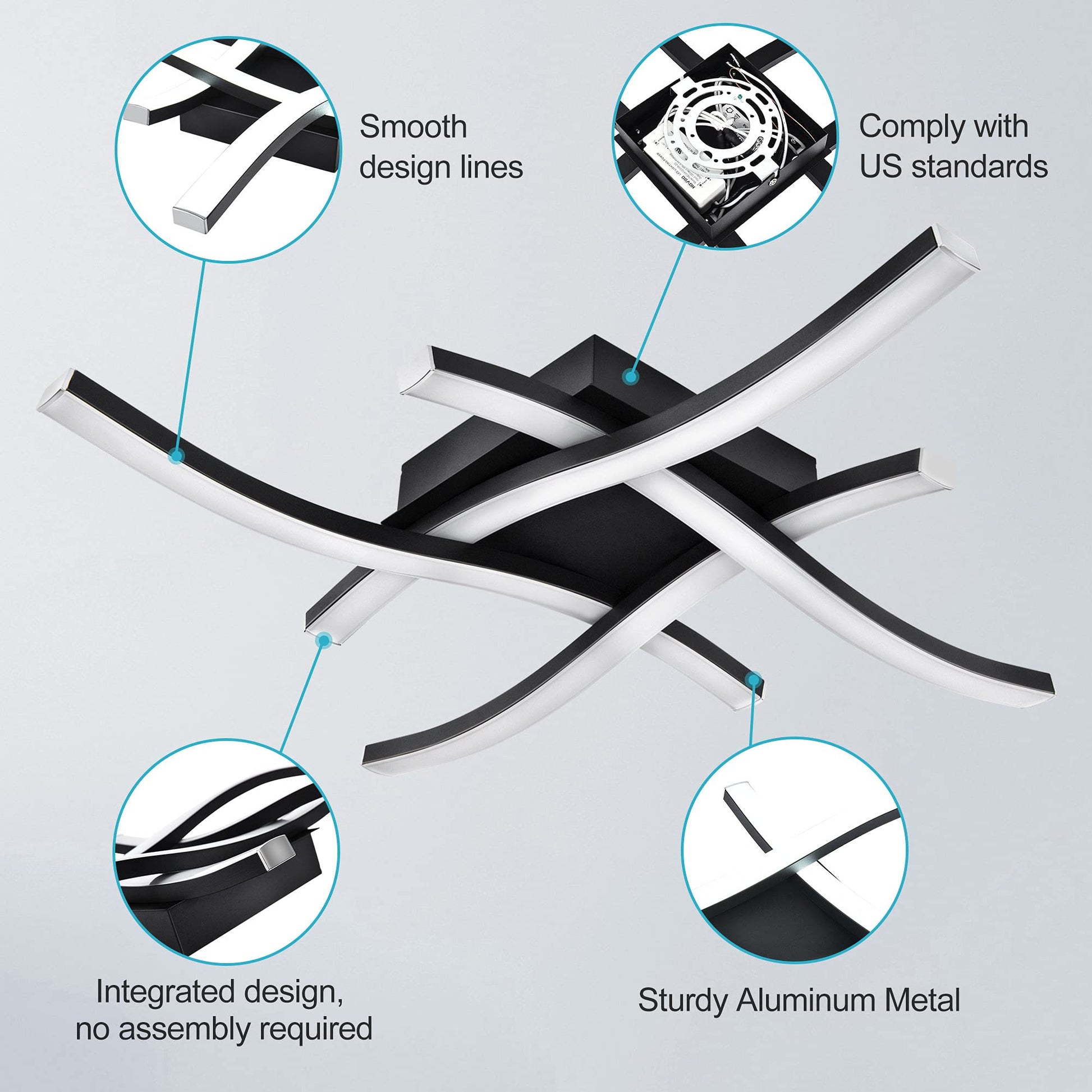 - Unique Curved Shape: This LED ceiling light features 4 curves lamp body shows the minimalist design concept. Eye catching design and clean look is sure to enhance atmosphere while provided enough brightness