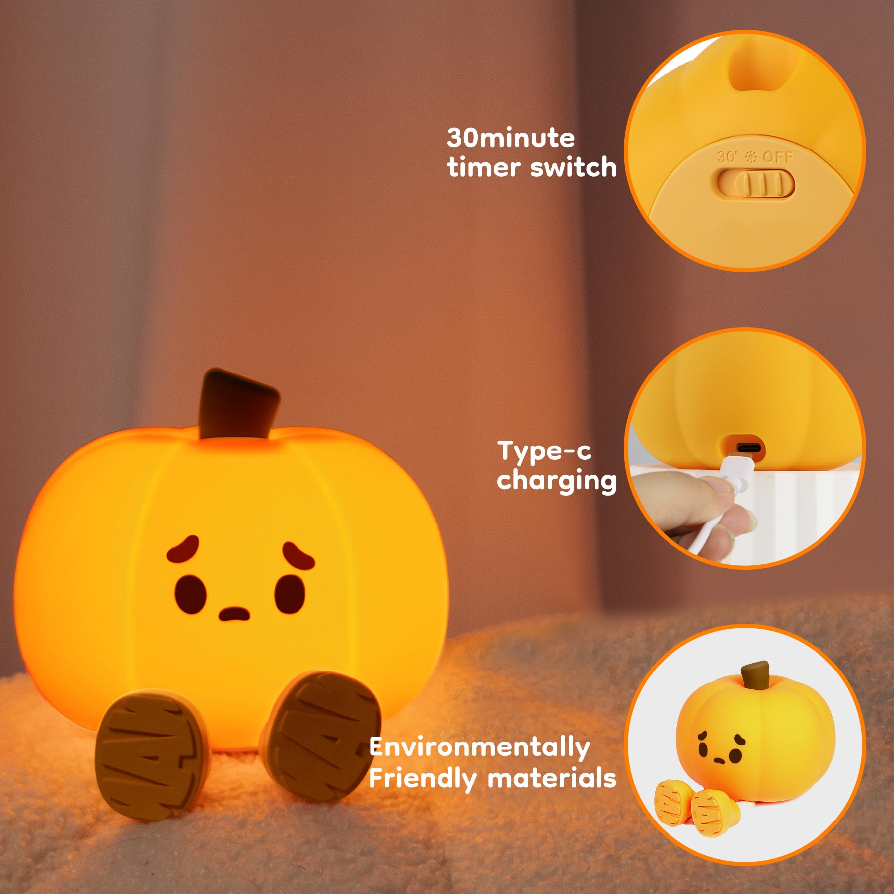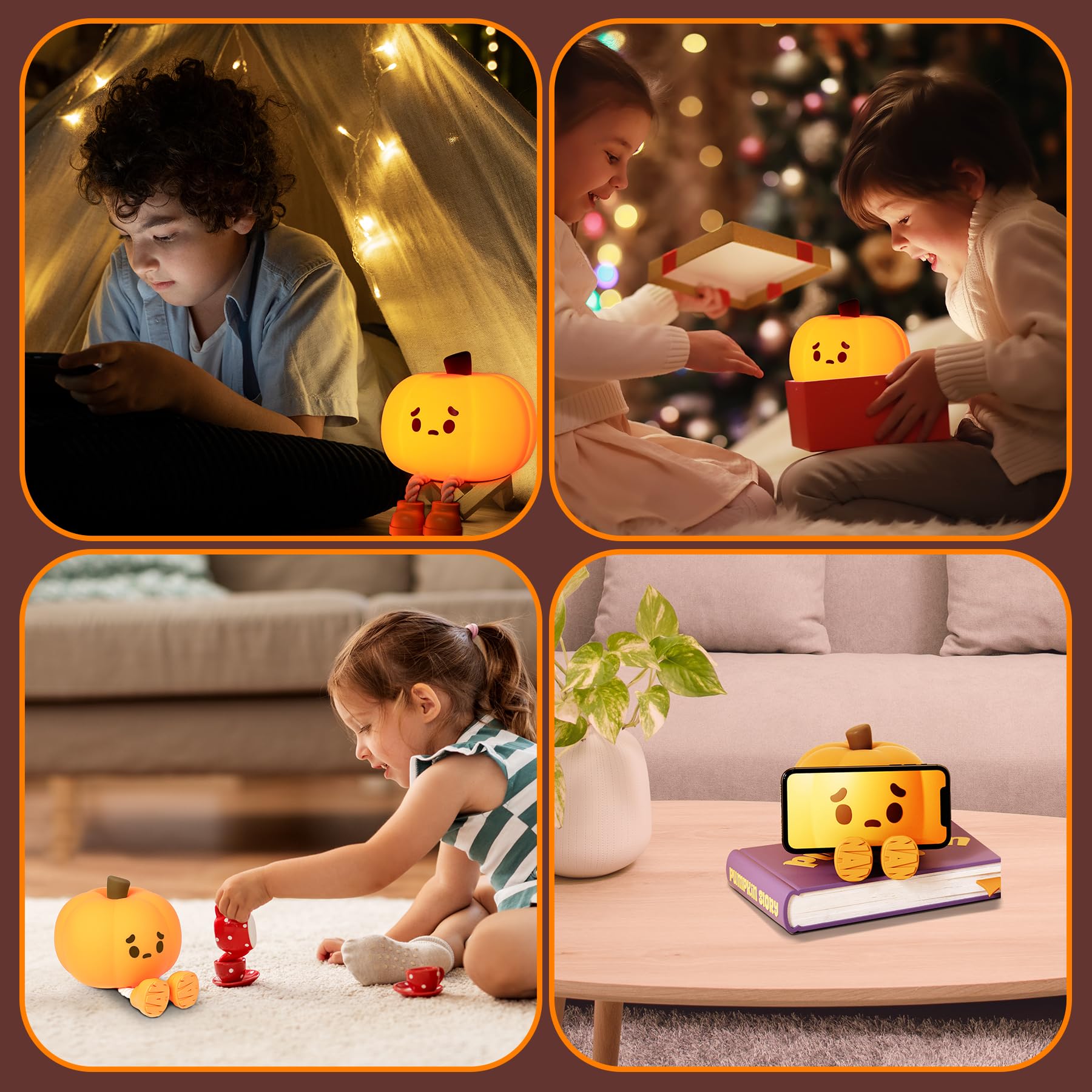 - Enhanced Fun Design 🎃: Enjoy a cozy bedtime with this charming Pumpkin-shaped night light.This light up pumpkin features adjustable brightness —weak, medium, and strong—making it easy to set the perfect ambiance for sleep or play. Just tap the top to change the light intensity and easily turn it off when needed.