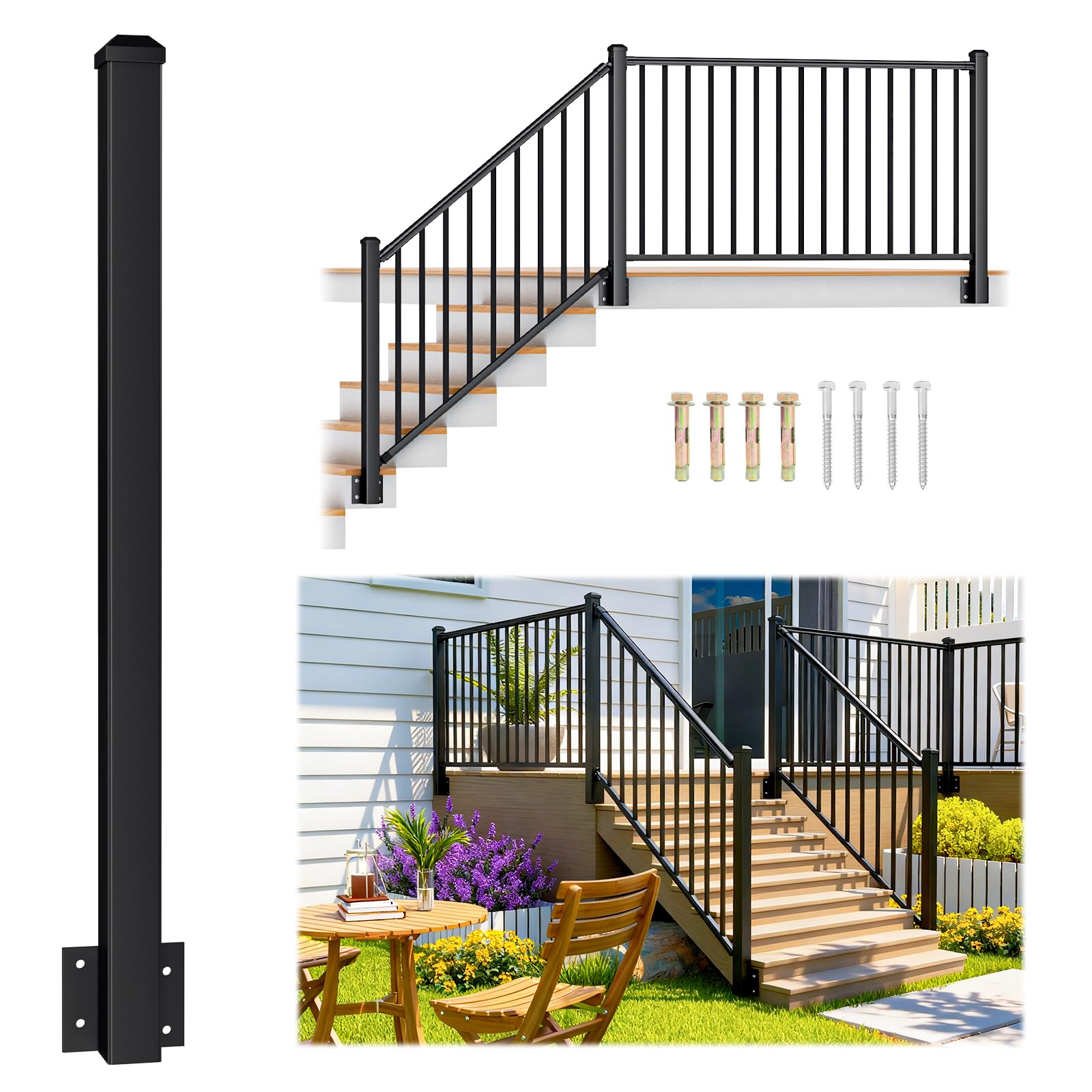 - Perfect for Porches, Decks & Stairs: Compatible with our 36" aluminum railing kits, this post works seamlessly in straight runs, corners, or stair transitions. Ideal for homeowners, remodelers, or contractors looking to create a clean, modern outdoor railing setup.