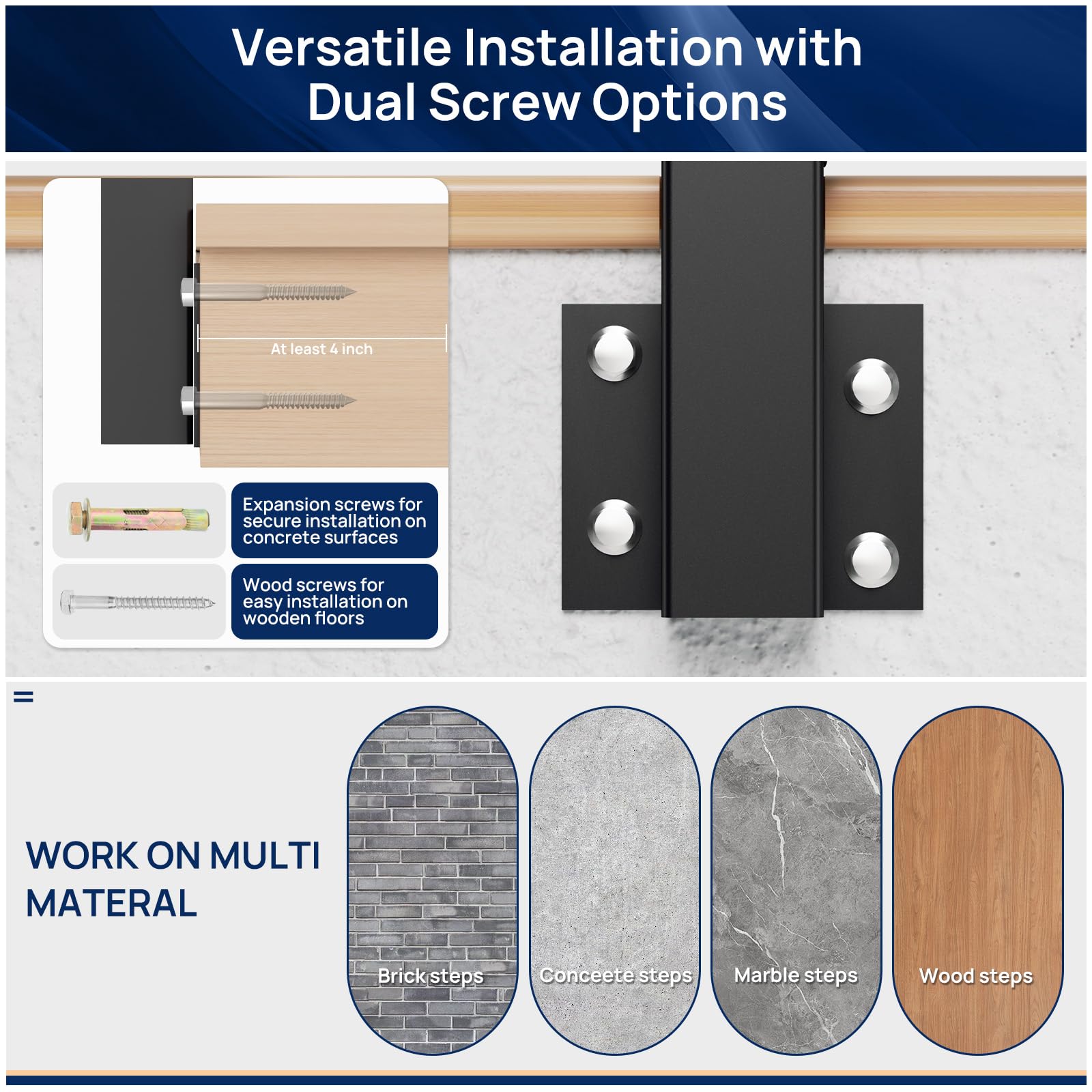 - Easy DIY Installation – Mounts to Wood, Concrete, or Brick: Comes with both expansion screws and wood screws for flexible attachment to fascia boards, concrete edges, or brick surfaces. Whether you're updating an older deck or building a new railing system, installation is fast and straightforward for any skill level.