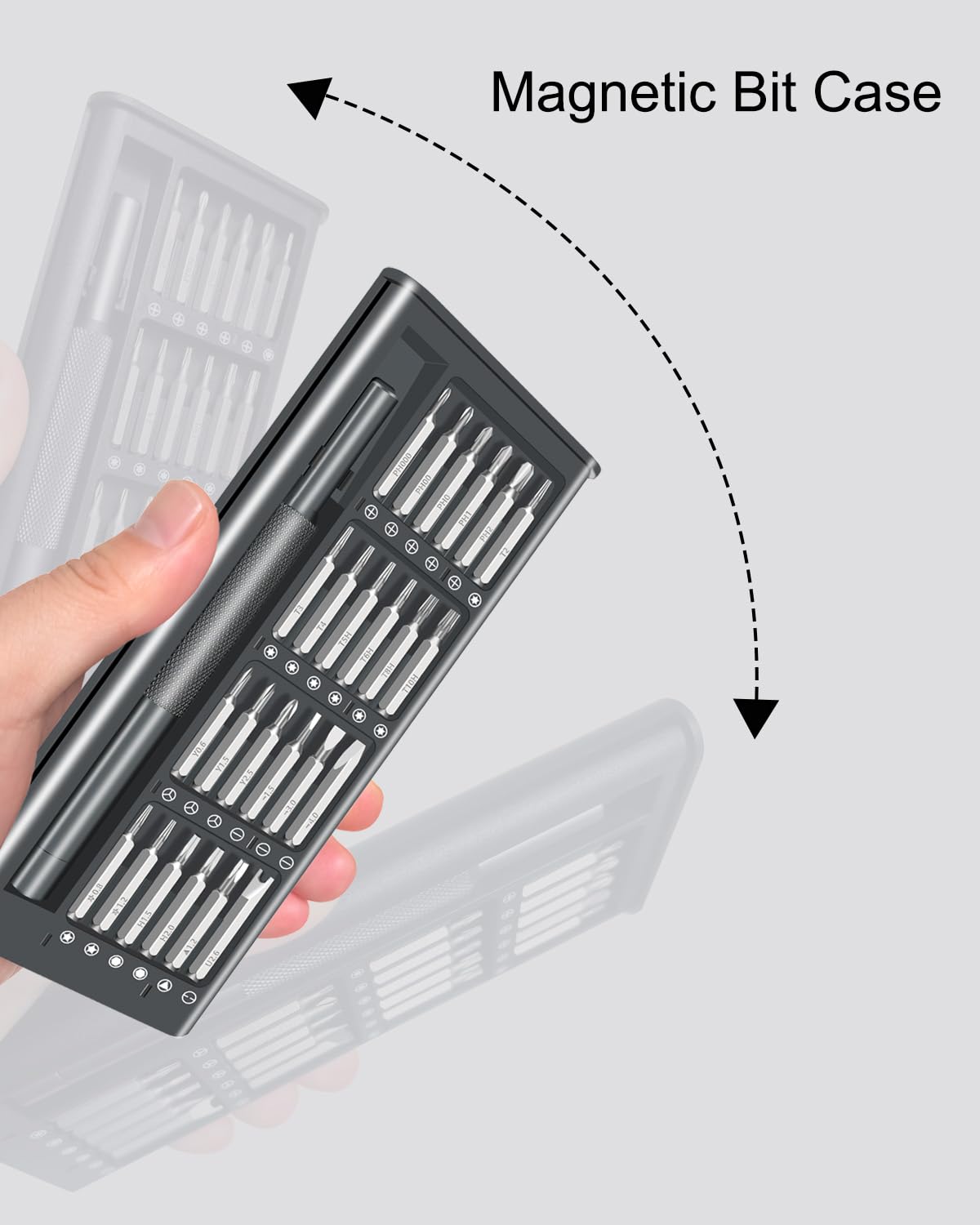 - [Magnetic Set Case] All screwdriver bits in the tiny screwdriver set are magnetic tips that make it easy to pick up small screws, and the magnetic screwdriver bit case base keeps the bits neatly organized at all times, preventing bits from getting lost or scattered.
