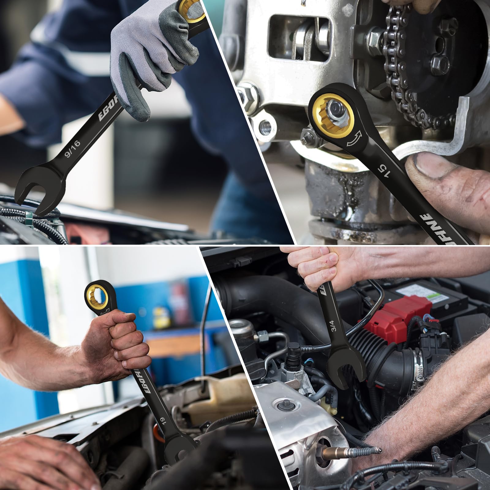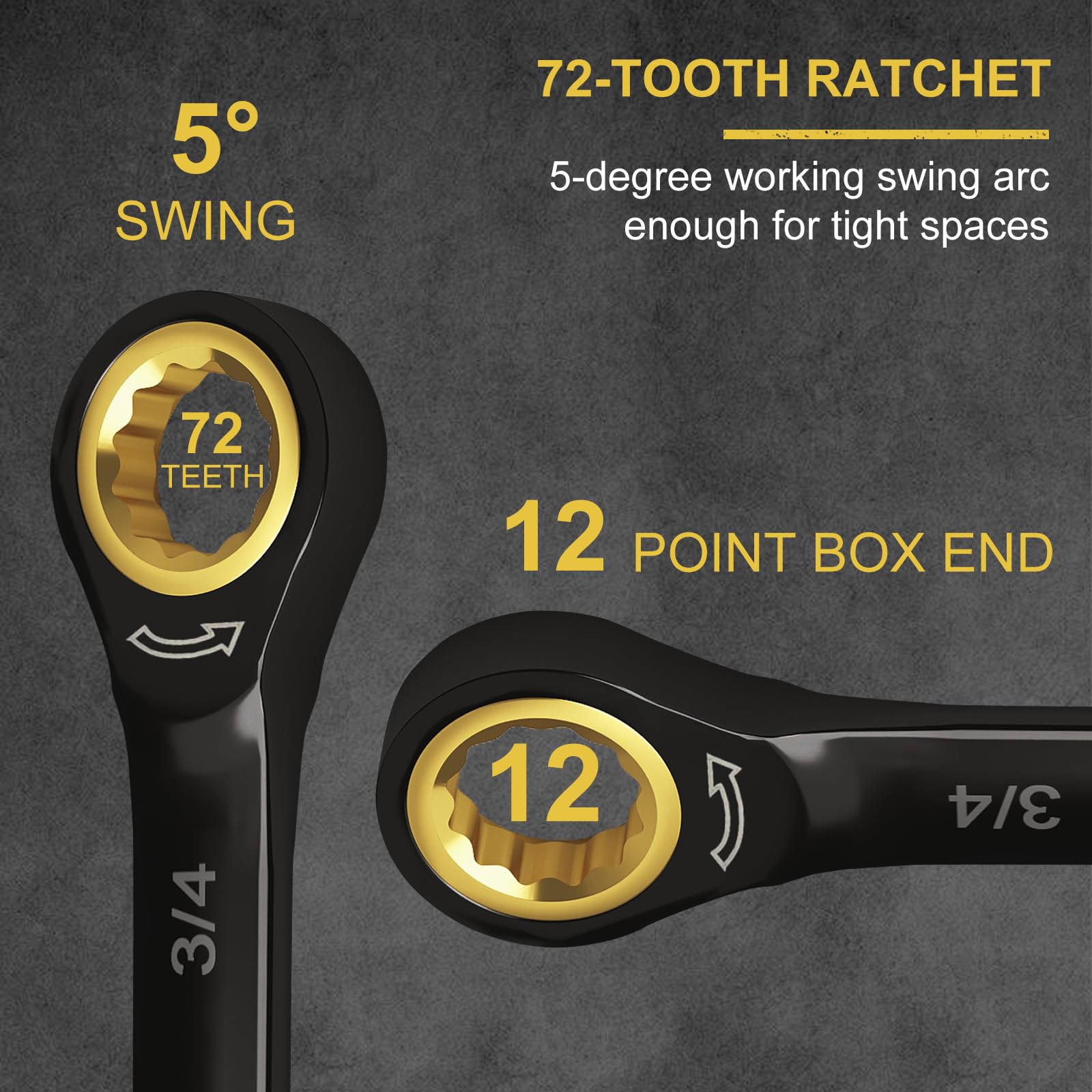Egofine 3/4 Ratchet Wrench, 3/4 Wrench Ratcheting Combination Wrenches SAE, Industrial Grade Gear Spanner with 12 Point Box End, 72-Teeth Ratchet Black Electrophoretic Coating,CR-V