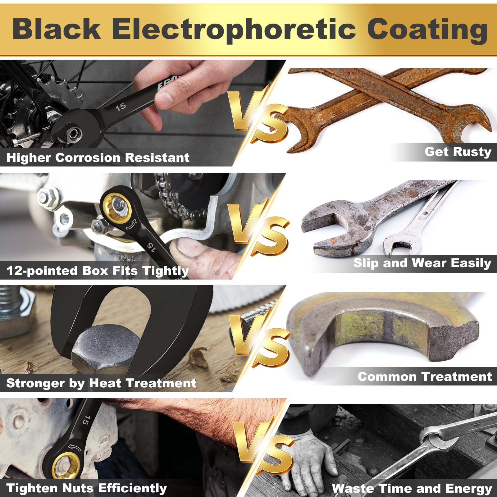 - Multiple applications: Ratchet Wrench with Black Electrophoretic Coating for any Professional Mechanic, Automotive, Bike Enthusiast, DIY Repair keep at home or put in your car to handle roadside emergency.
