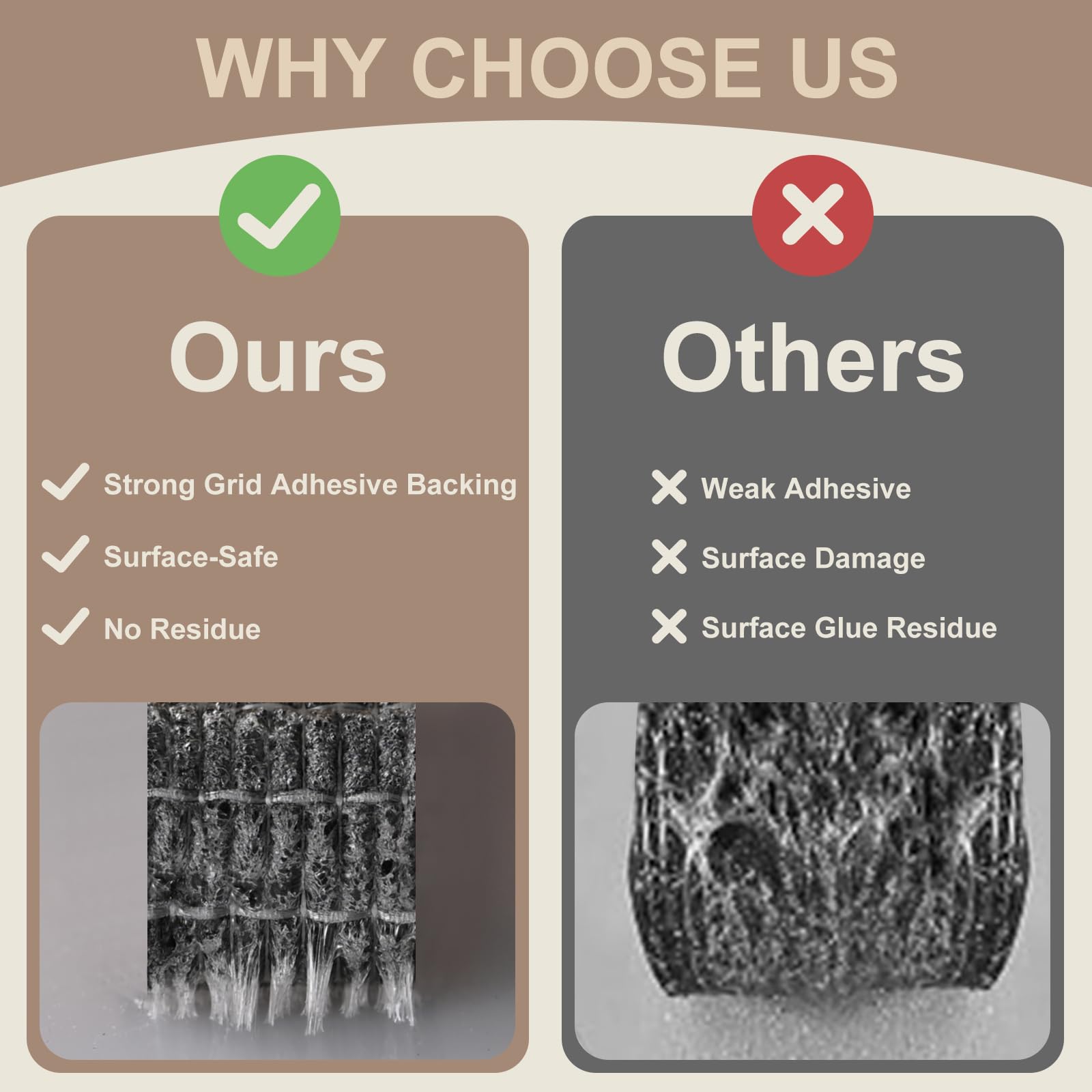 - Clever Design: We've handpicked high-grade adhesive for each foam weather stripping and applied an innovative grid pattern for the adhesive application. This design not only ensures a strong bond but also prevents the seal from coming loose or leaving behind any sticky residue.
