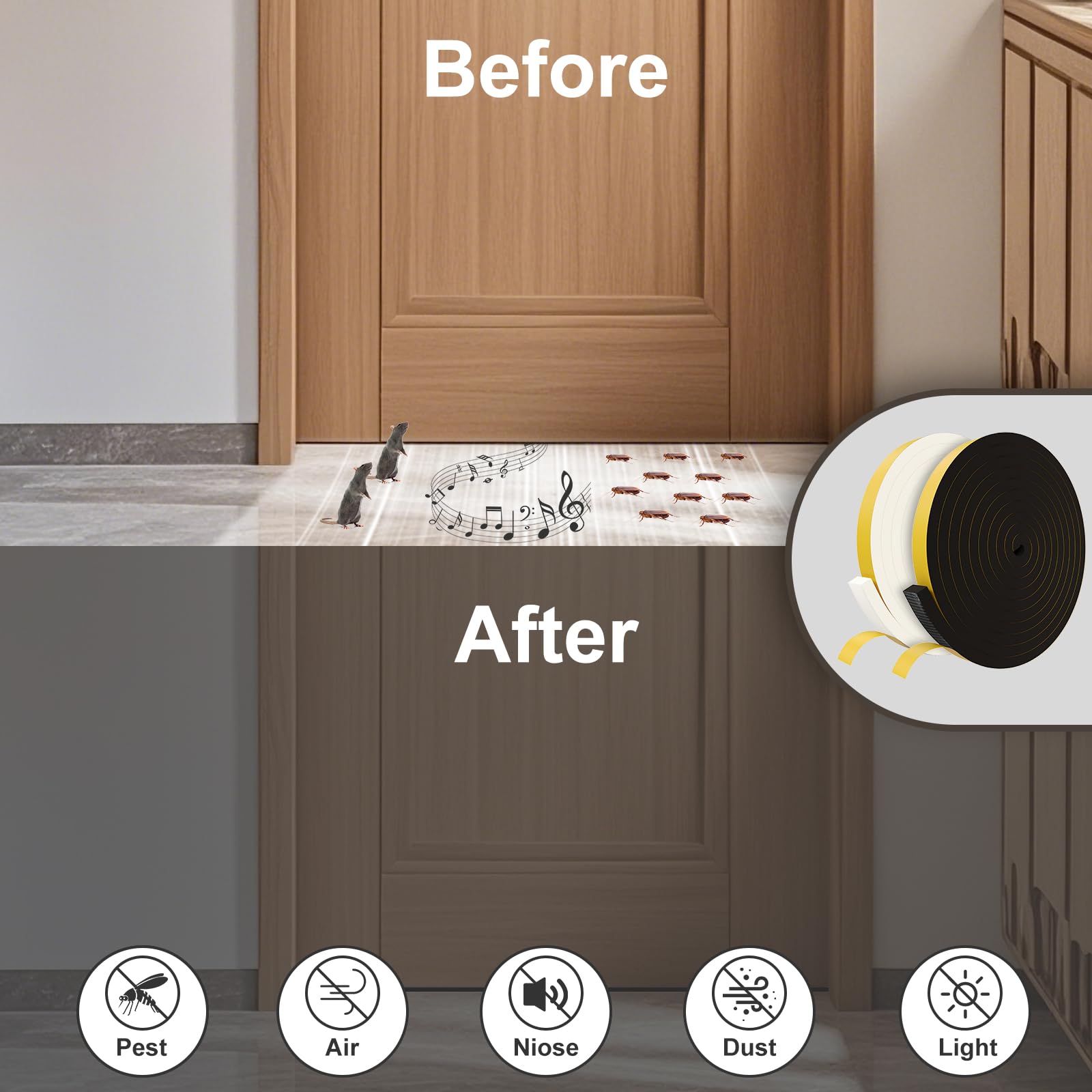 - Energy Conservation: Using these adhesive weather stripping to seal gaps can significantly reduce energy use, keeping your home cool in the summer and warm in the winter, which helps lower your electric bill. Installation is quick and easy, requiring no additional tools—just peel off the backing and stick it on.