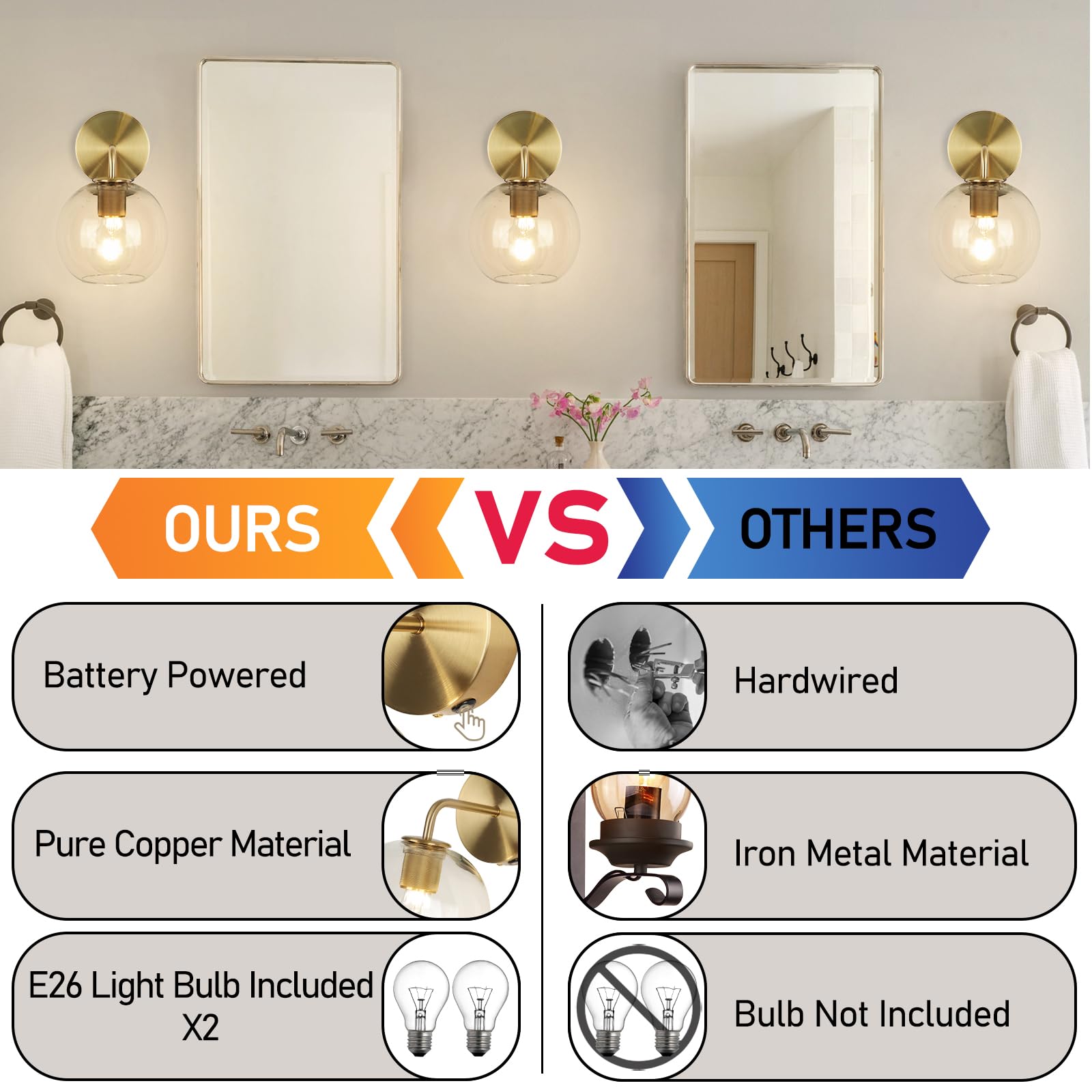 - 【DIMMABLE WALL LIGHT】The battery operated wall light offers different brightness levels (10% to 100%) to suit all your different lighting needs. Whether you're reading for work or partying for fun. This gold wall sconce is rich in functionality and beauty, ideal for you