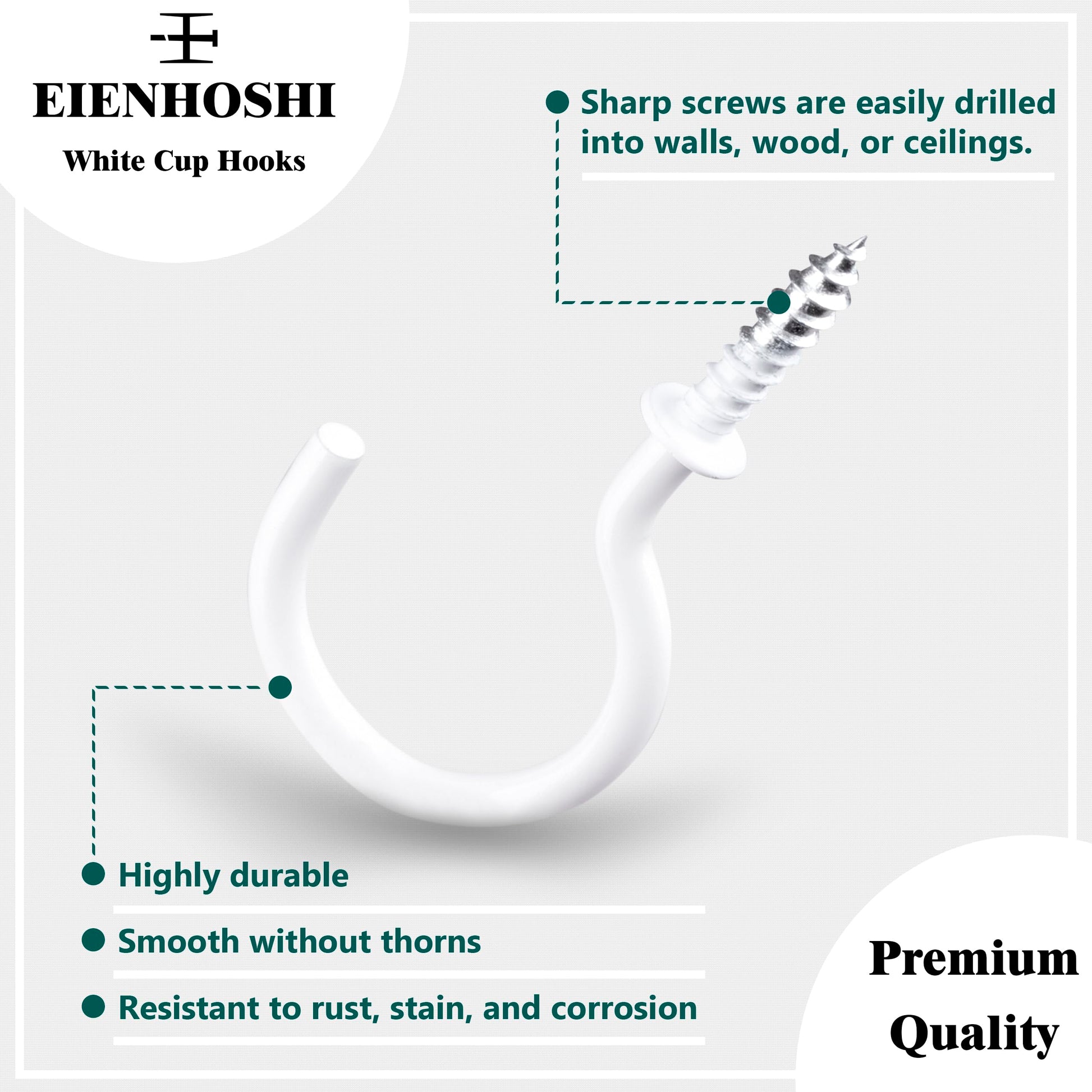 - 【Premium Quality】Our cup hooks are made of high-quality steel and the surface is white plated and smooth without thorns. It helps prevent rust and will not scratch your hands or hanging objects