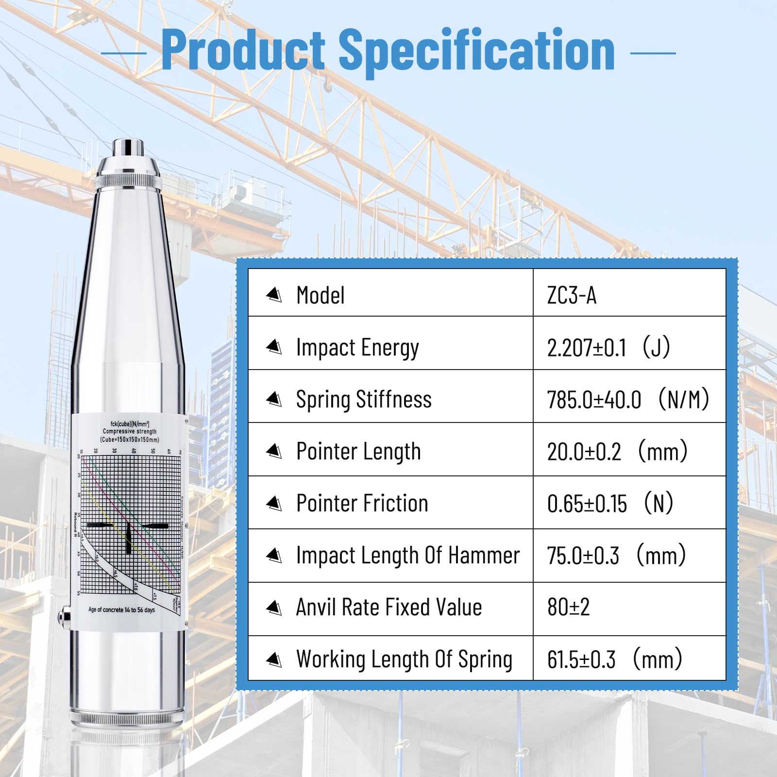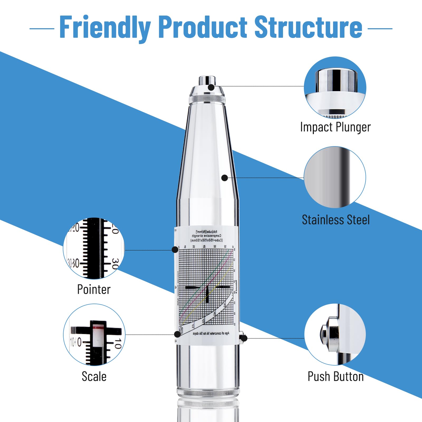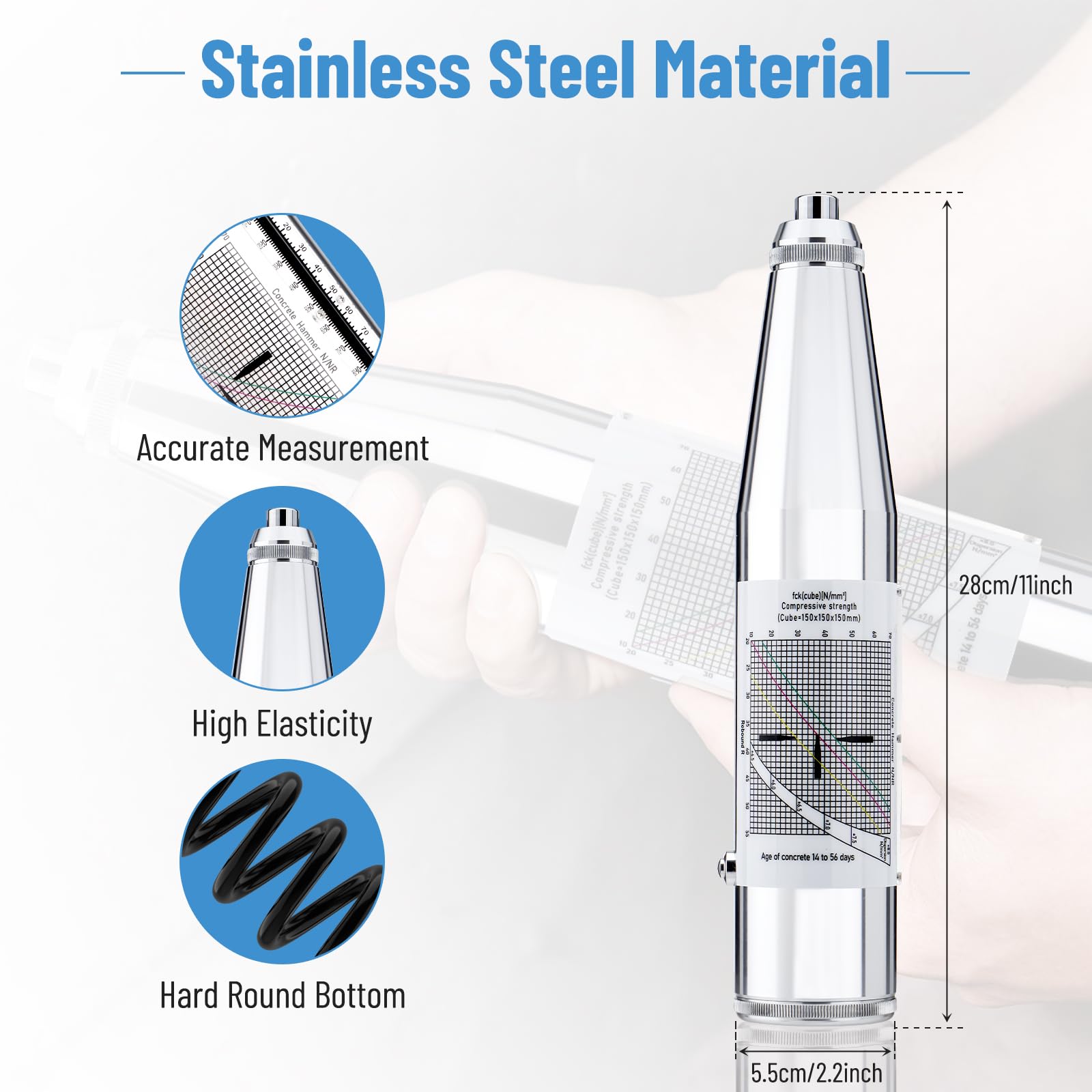 - Portable and lightweight: Designed for convenience, this concrete rebound hammer is compact and lightweight, making it easy to carry and transport to various job sites. Its portable nature enables quick and reliable concrete strength testing in different locations