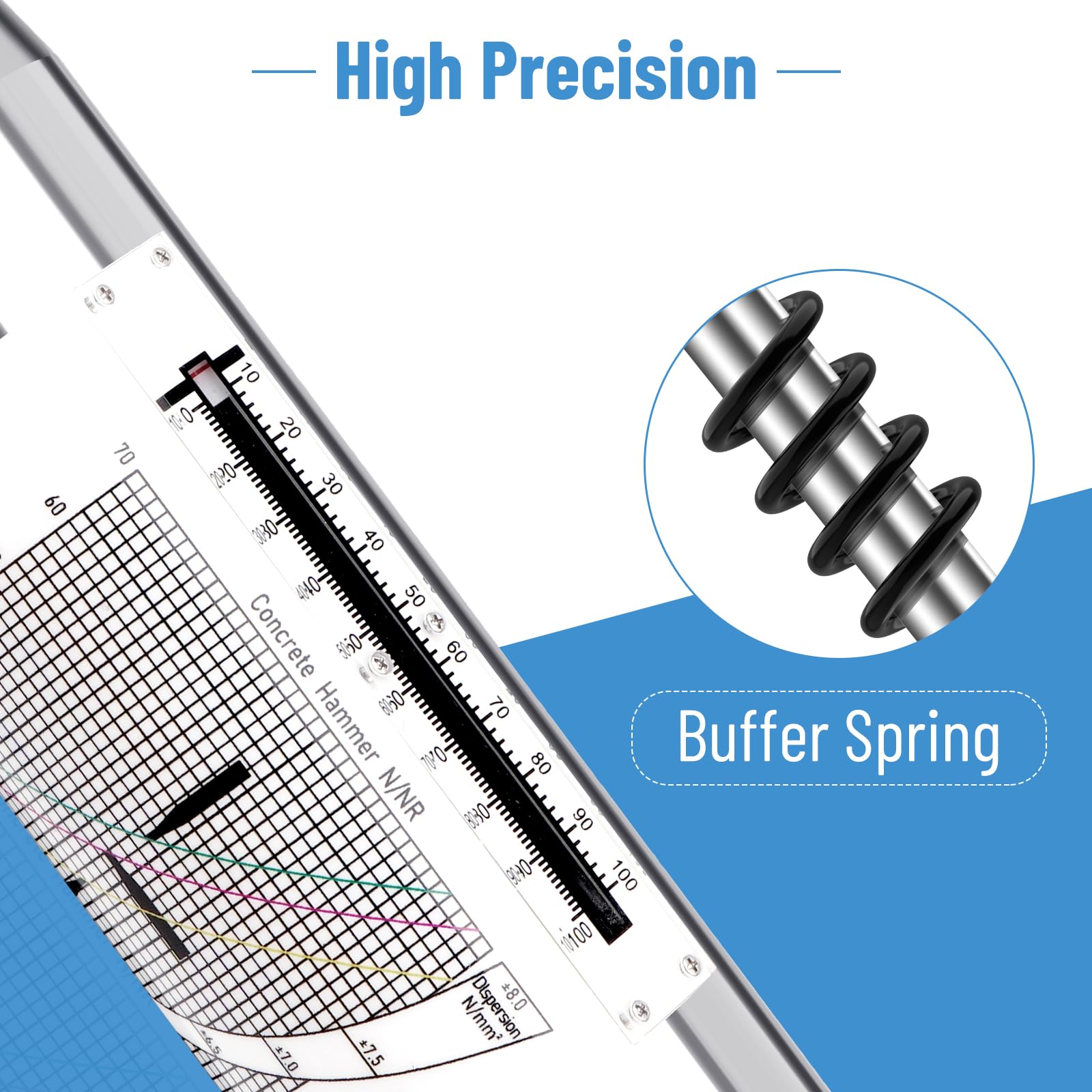 - High quality construction: Our concrete rebound hammer is meticulously designed with top-grade materials, ensuring exceptional reliability. This portable resiliometer test tool is specifically engineered for accurate and precise measurements of concrete strength