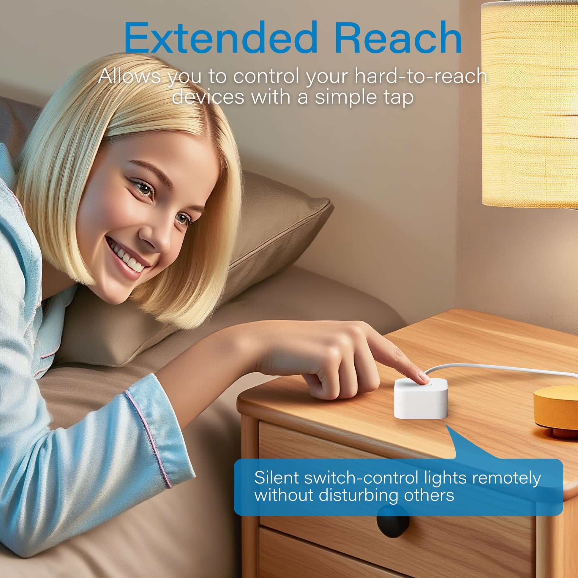 - Why Choose Us: Unique design, easily control desk lamps, indoor holiday and Christmas lights, Wi-Fi routers, and other devices with just a button press; suitable for placement on desks, floors, or walls for convenient operation without bending----Elegant appearance with bright white finish perfectly matches home décor----Silent button design ensures noiseless switching, avoiding disturbance to others, ideal for nighttime or quiet environments----Equipped with keyhole slots for easy wall-mounting, while the non-slip base keeps it stable on desktops, offering flexible arrangement for various needs