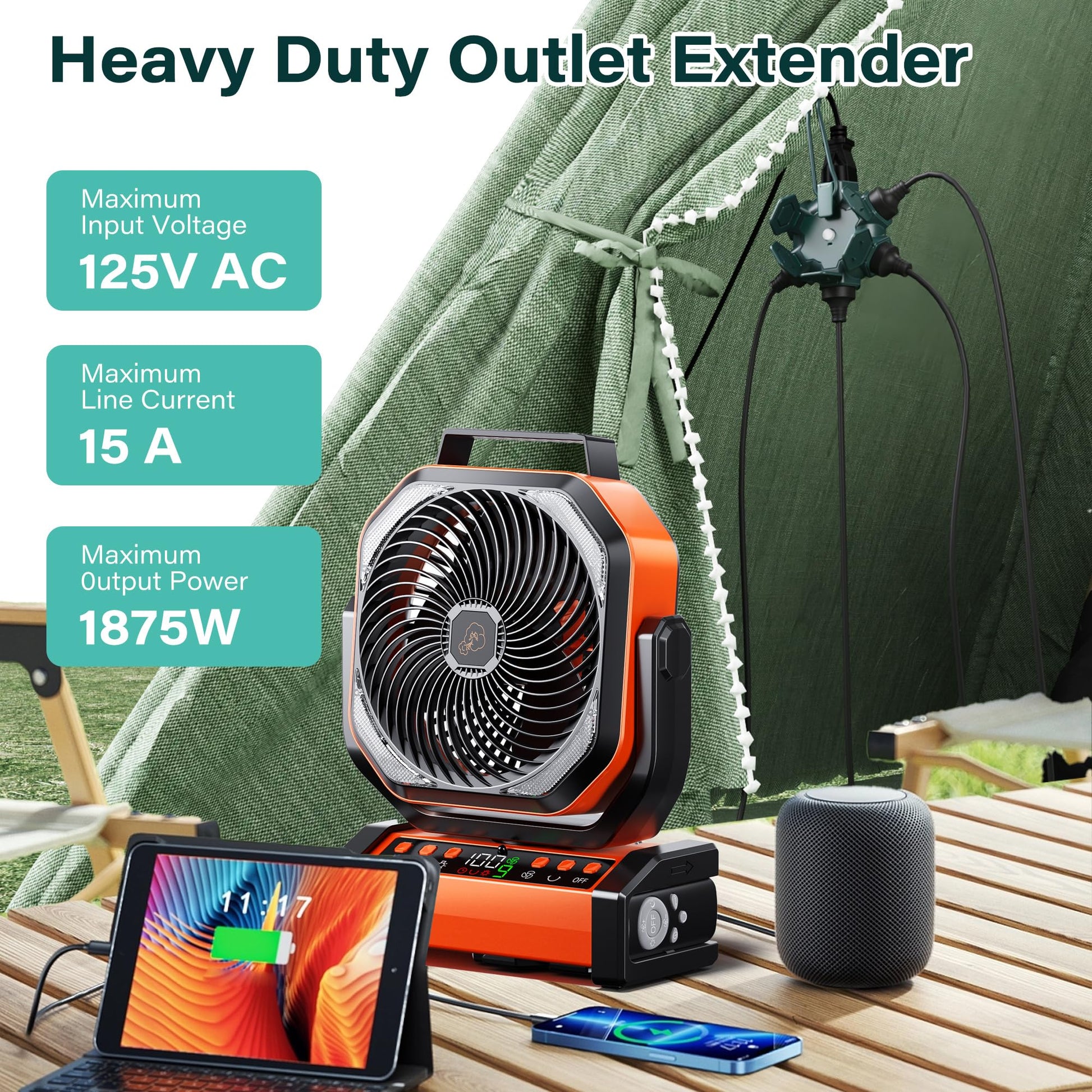 - Wide Compatibility: Outlets feature a standard NEMA 5-15 three-prong design, compatible with grounded and polarized plugs, suitable for most power tools, lighting equipment, and household appliances----Widely applicable in households, offices, construction sites, workshops, outdoor events, and more----Can be paired with most extension cords, perfect for holiday decorations, outdoor operations, and temporary equipment power supply