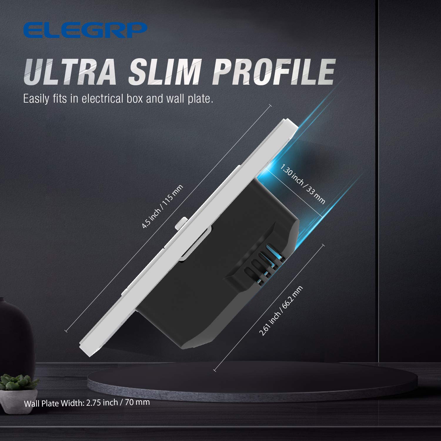 ELEGRP Slide Dimmer Switch for Dimmable LED, CFL and Incandescent Light Lamp Bulbs, Single Pole or 3-Way, Full Control with Preset, Rocker Paddle, Wall Plate Included, UL Listed (10 Pack, Matte White)