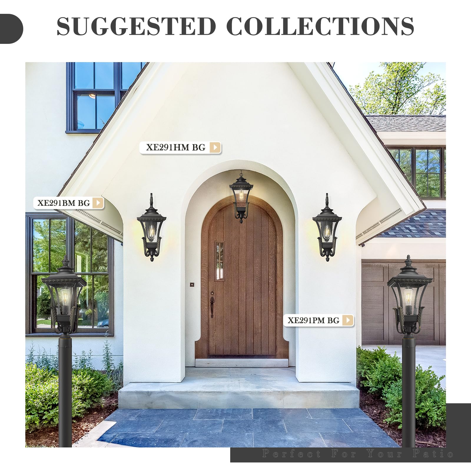 Emliviar 22.4 Inch Farmhouse Outdoor Post Light, 1-Light Exterior Pillar Lamp for House Patio, Die-Cast Aluminum with Seeded Glass, XE291PM BG