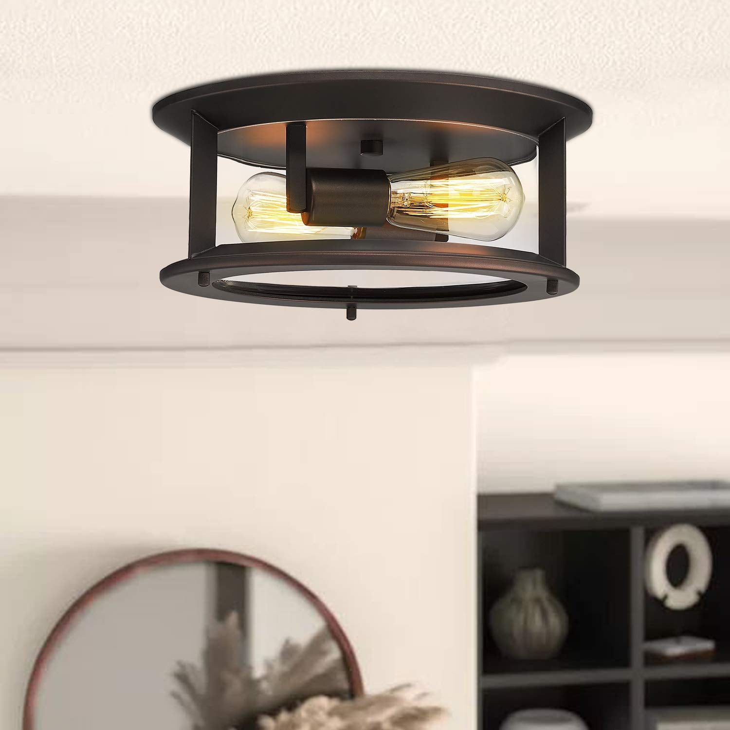 Emliviar Ceiling Light Fixture 12 Inch, Farmhouse Flush Mount Ceiling Light with Clear Glass in Oil Rubbed Bronze Finish, YE19108-F1 ORB