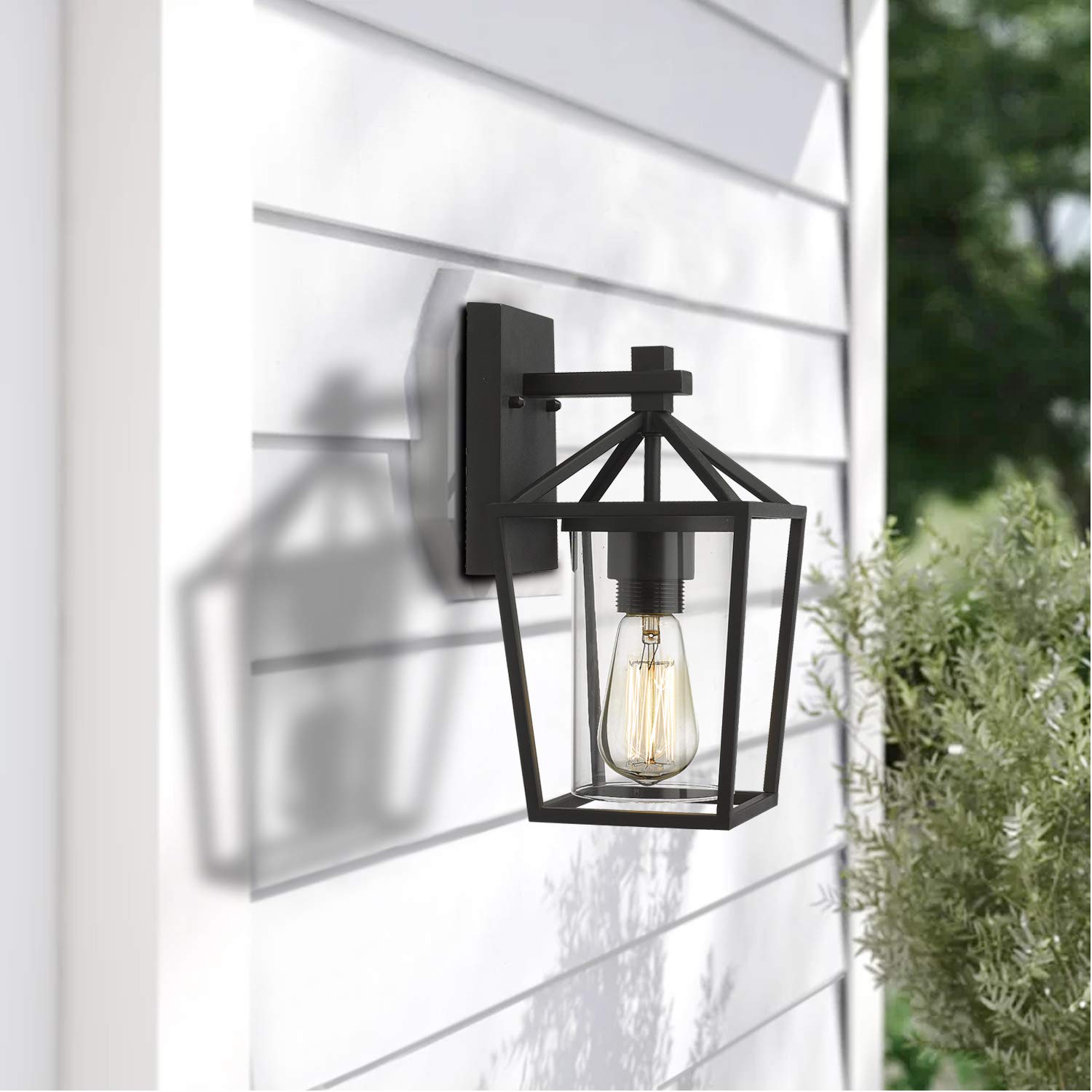 Emliviar Outdoor Wall Lights 2 Pack, Exterior Wall Mounted Light Fixtures, Black Finish with Clear Glass, 20065B3-2PK