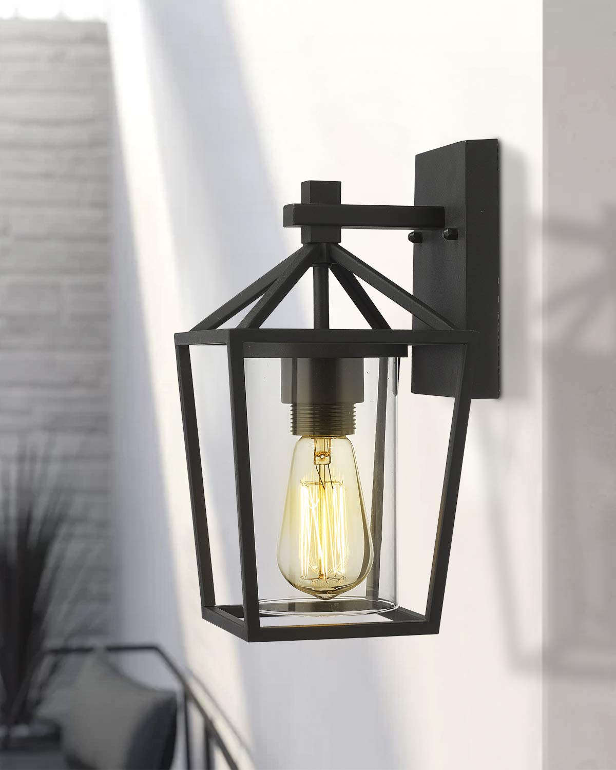 - Weather resistant and suitable for wet locations, these 2 pack porch lights features sturdy metal construction and clear glass in black finish
