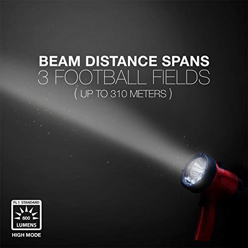 - [2 MODES]: With an output of 600 lumens on High mode for up to 4 hours or 300 lumens on Low for up to 9 hours, this LED spotlight offers versatile bright light
