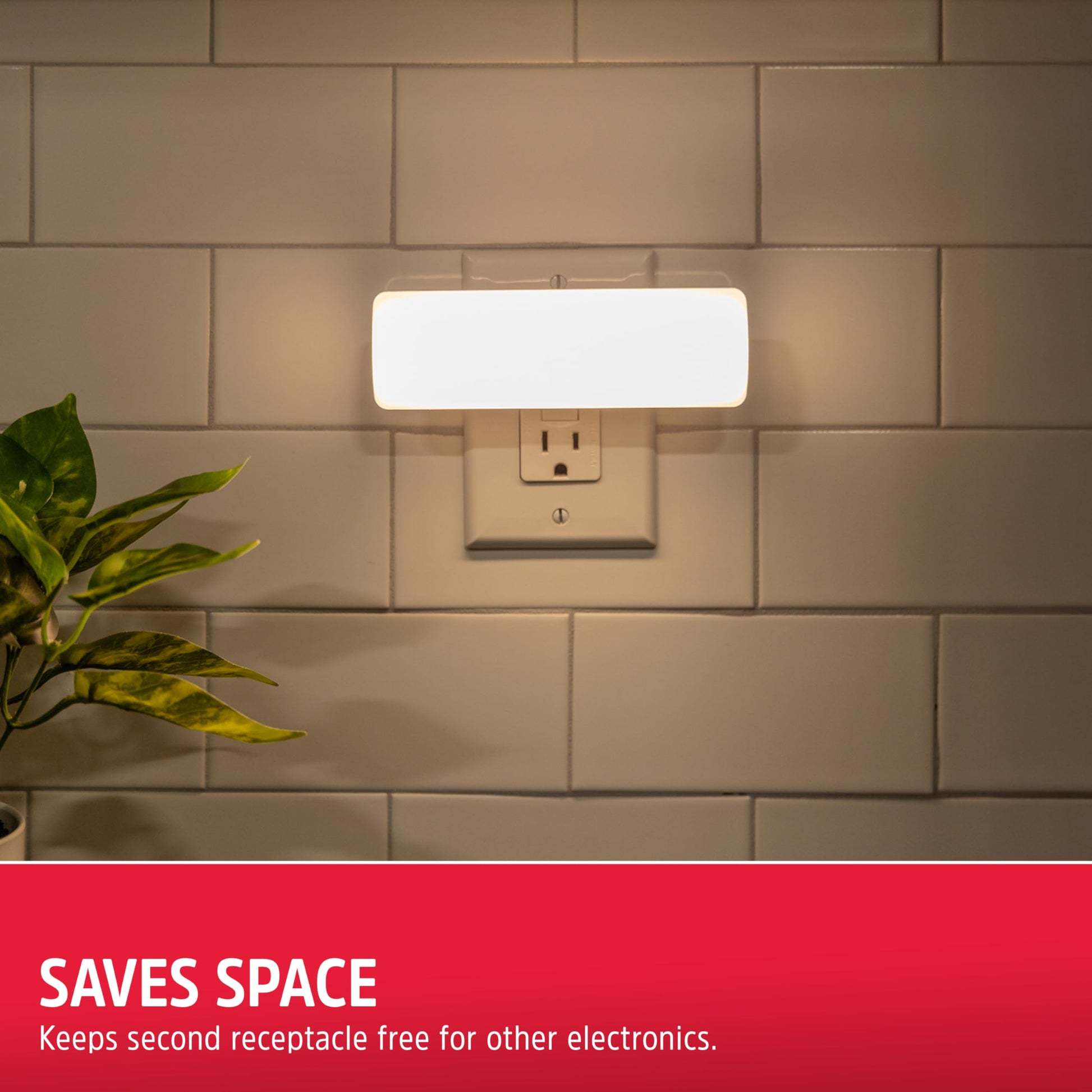 Details: Brighten your space with the Energizer UltraBrite LED Light Bar. Simple yet effective, this 100-lumen plug-in light bar features a fully enclosed, tamper-resistant LED that’s ideal for hallways, kitchens, garages, utility rooms and more. It’s slim design not only saves space, covering only one receptacle, but blends beautifully into most settings to provide the perfect amount of light where and when you need it most. The light bar includes an ON/AUTO/OFF switch so you can select the mode that meets your needs: automatic light sensing, continuous on or off. When set to AUTO, the built-in light sensor will automatically turn the light on when the room becomes dark or off when the room is lit — ON at dusk, OFF at dawn. This feature not only provides light when needed, it also conserves energy and helps reduce electricity costs. The light stays cool to the touch and is ETL safety certified for your peace of mind. Light your way with the Energizer UltraBrite LED Light Bar.